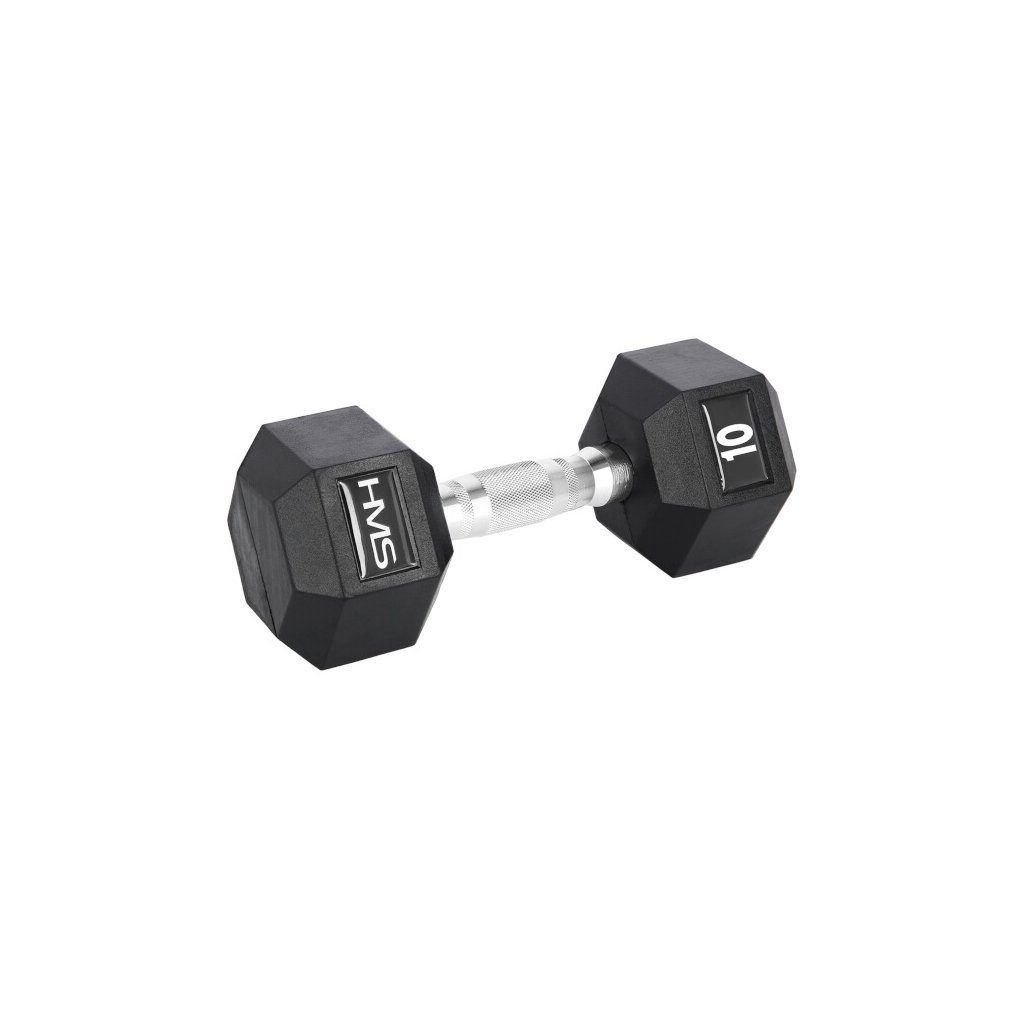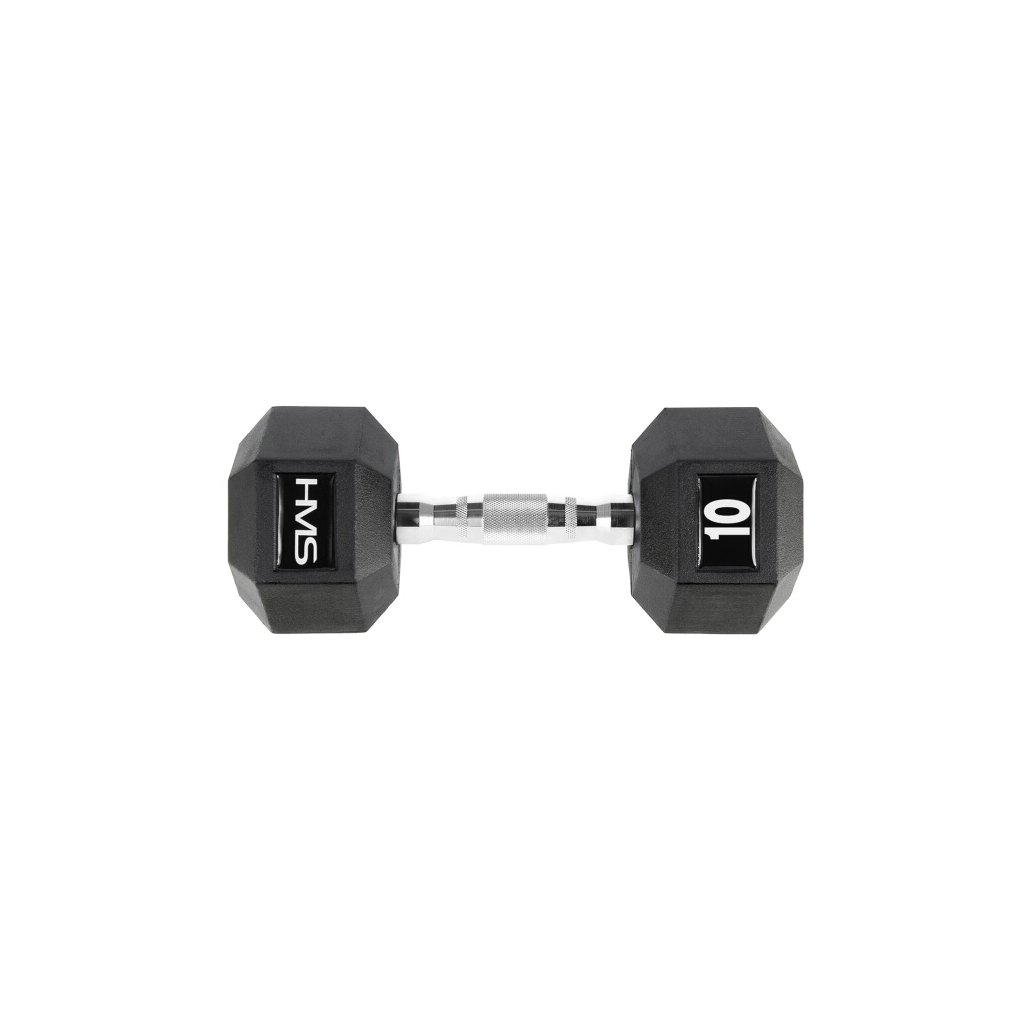 10ti kilogramová jednoruční, šestihranná činka určená pro profesionální použití jak doma tak v posilovně. Šestihranný tvar zamezuje nechtěnému pohybu činky při jejím odložení a pogumování prodlužuje její životnost.