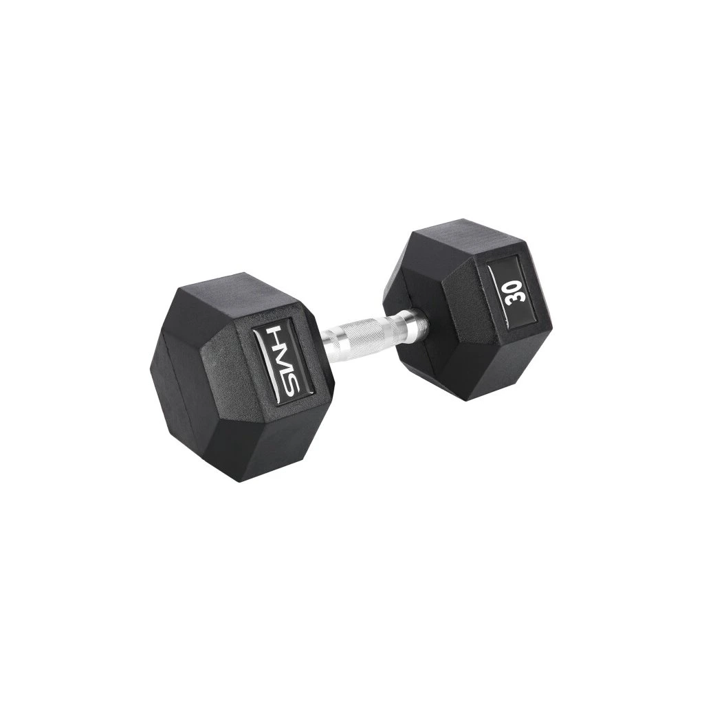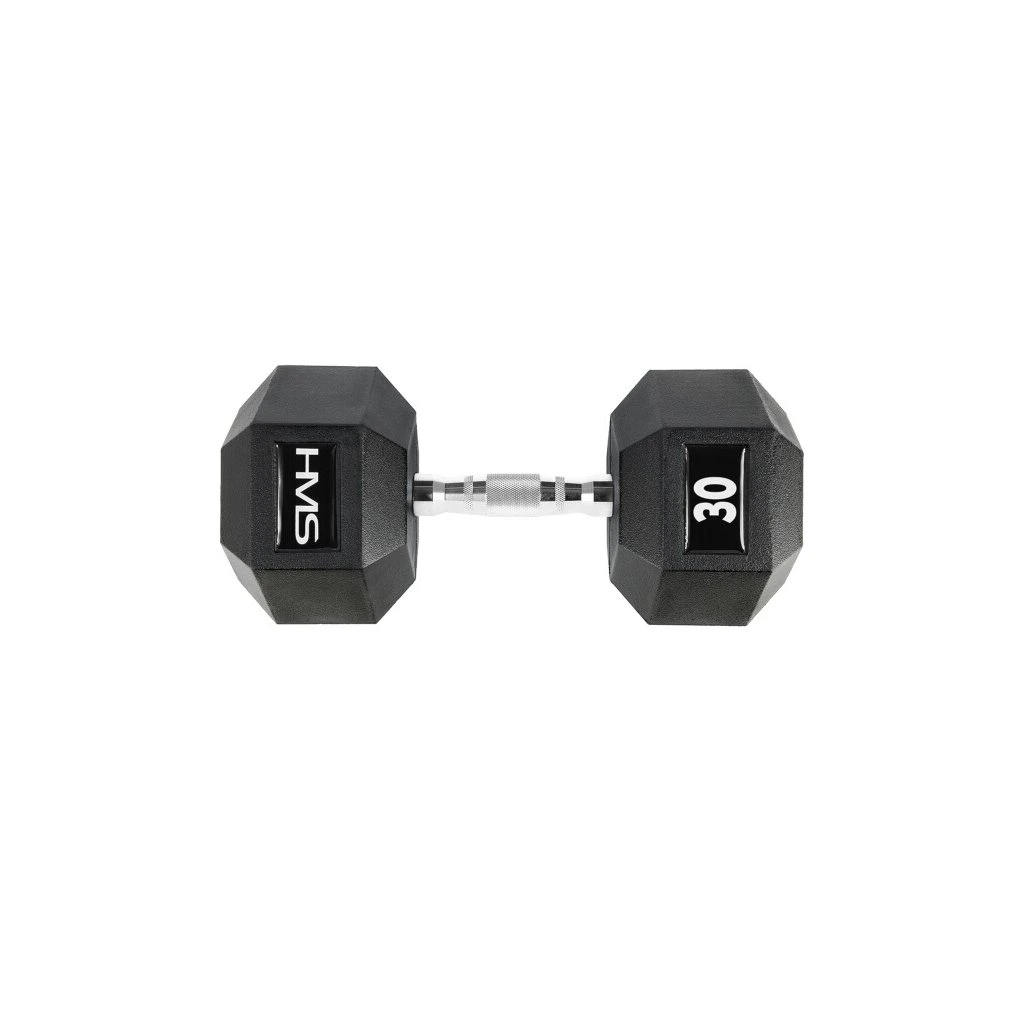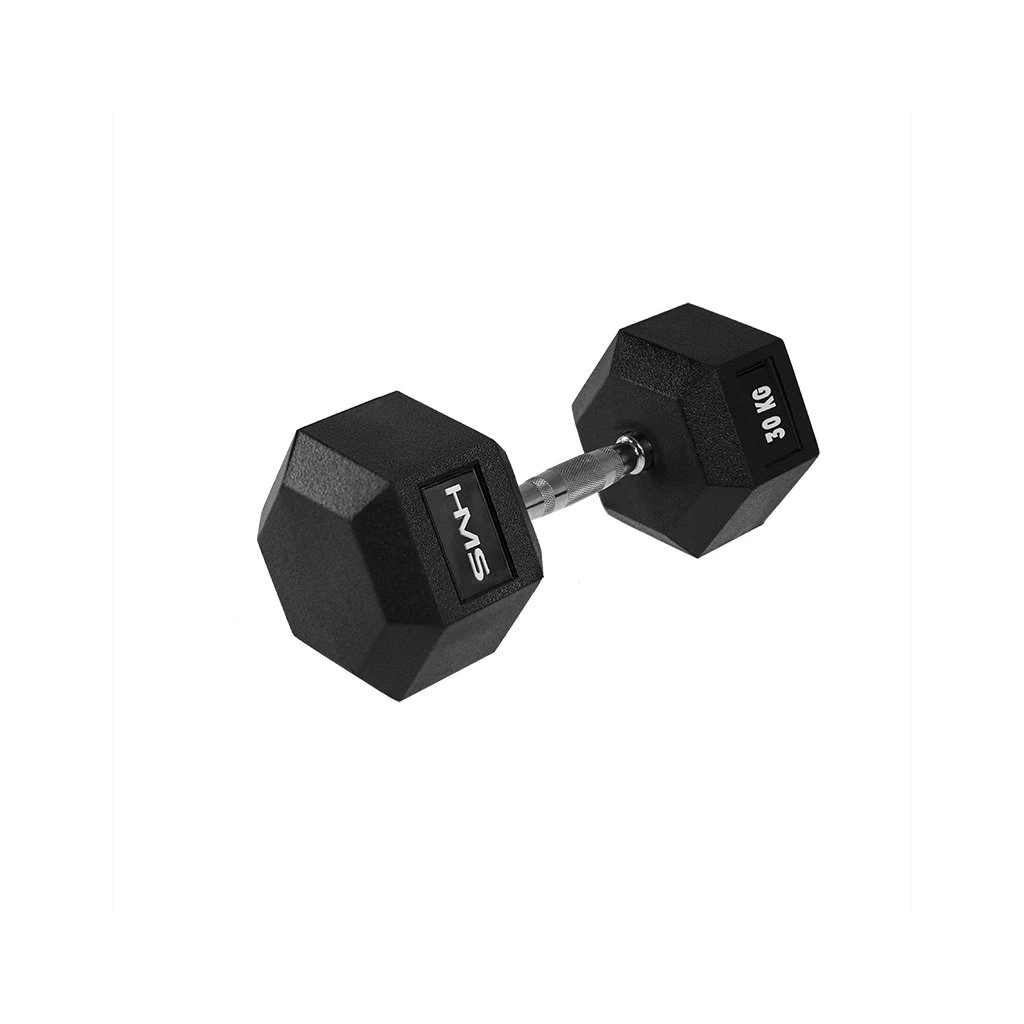 30ti kilogramová jednoruční, šestihranná činka určená pro profesionální použití jak doma tak v posilovně. Šestihranný tvar zamezuje nechtěnému pohybu činky při jejím odložení a pogumování prodlužuje její životnost.