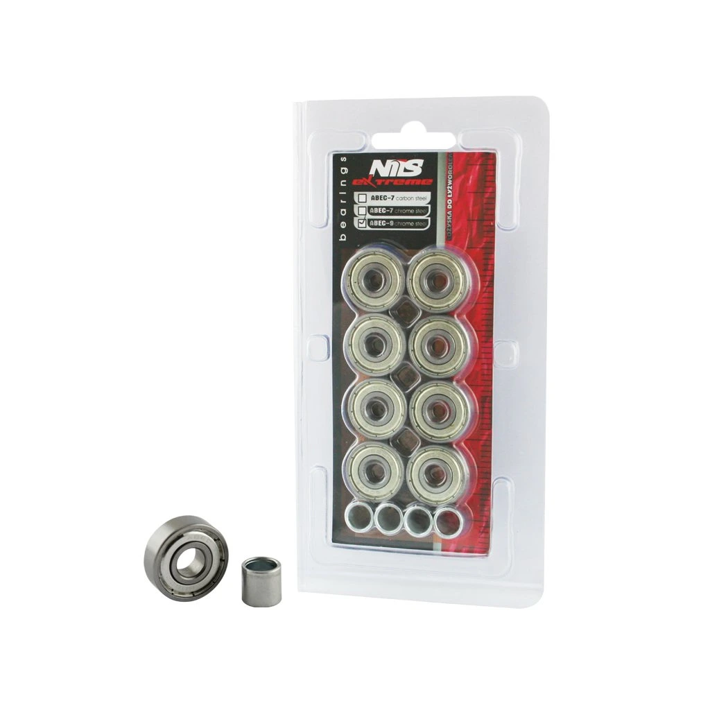ABEC 9 chrome ložisko je vyrobeno z vysoce kvalitní chromové oceli. Výhodou tohoto provedení je nejnižší valivý odpor, který se promítá do vyšší rychlosti v americkém standarduAnnular Bearing Engineering Commitee ve zkratce ABEC. Důležitým parametrem je excentricita ložiska nebo kruhovitost 0,0012mm. Ložiska pro brusle, skateboardy a koloběžky.