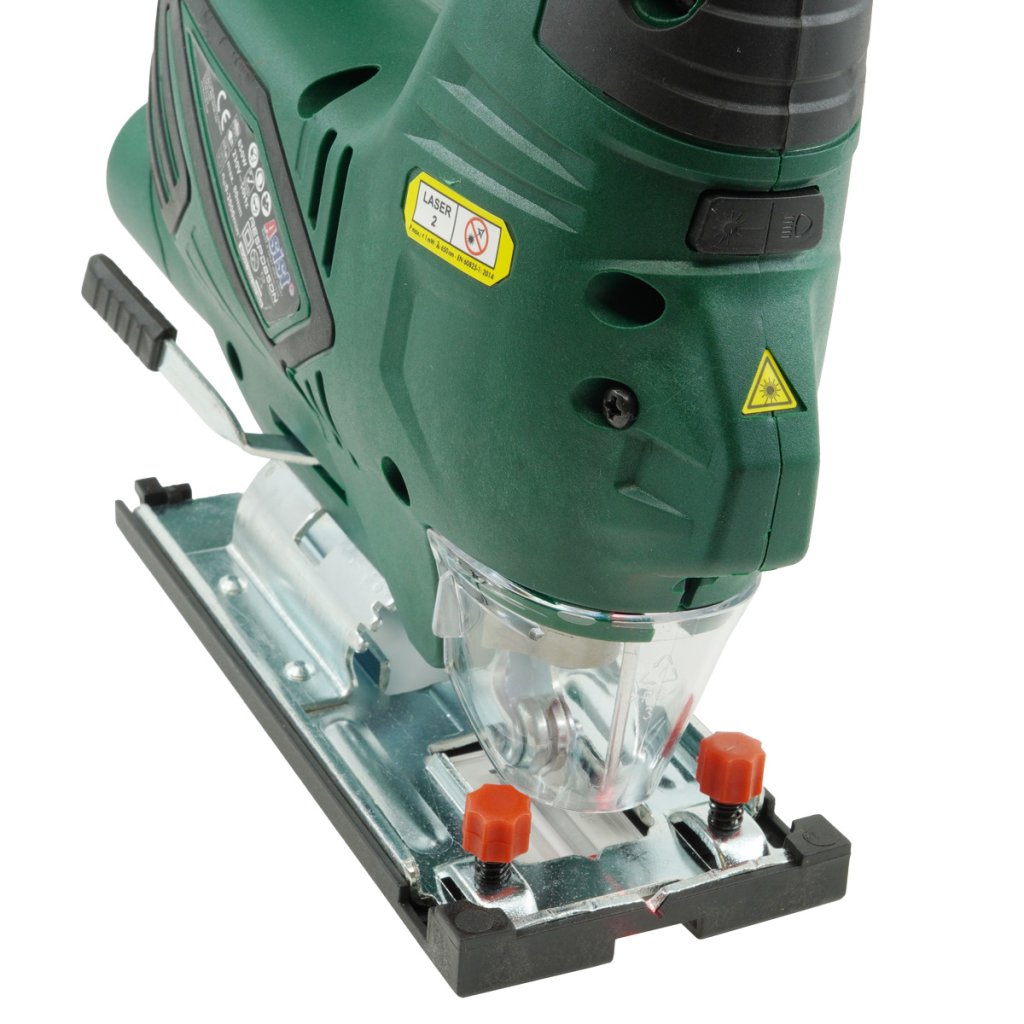 Elektrická přímočará pila výkonem 850W a s nastavitelným úhlem řezání a předkmitem. Může opracovávat ocel, plasty nebo i dřevěný materiál, podle použitého pilového listu. Regulace frekvence kmitání.Šikmý řez 0 - 45°. Železná základna.