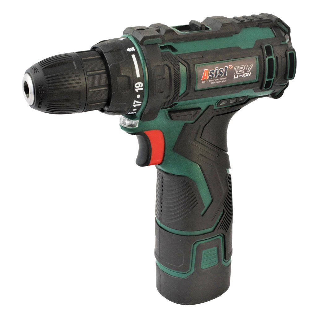 Aku vrtačka značky ASIST je výborným pomocníkem k vrtání či ke šroubování bez nutností použít elektrický proud. Obsahuje akumulátor Li-lon o kapacitě 1300 mAh. Vrtačka je dvourychlostní. Můžete použít plynulou regulaci od 0 až po 1300 ot/min.