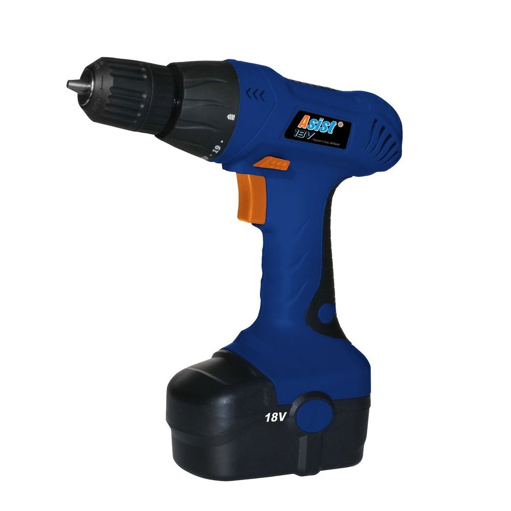 Aku vrtačka Asist 18V, s otáčkami 0-550/min. Je možné nastavit 16+1 stupňů utahování. Akumulátor je typu 1000 mAh Ni-Cd s dobou nabíjení 3 - 5 hod. Vrtačka má rychloutahovací sklíčidlo 10 mm. Díky ergonomické rukojeti se dobře drží. Můžete ji použít na vrtání a šroubování. Hodí se na domácí a hobby použití. Součástí balení je náhradní akumulátor.