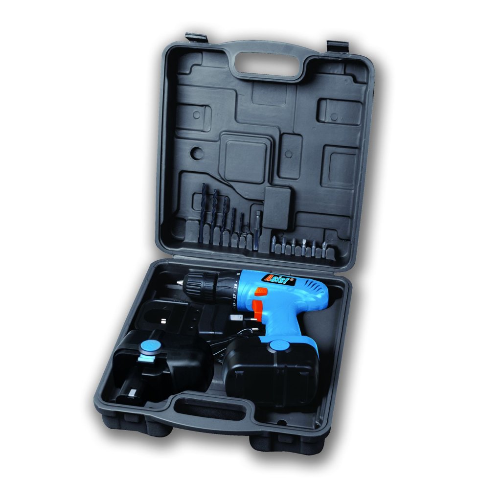 Aku vrtačka 18V, dvě rychlosti otáček 0-400/min. a 0-1100/min. s plynulou regulací. Kroutící moment 16Nm. Nastavitelné stupně utahování. Dva akumulátory 1200mAh Ni-Cd s dobou nabíjení 3-5 hod. Rychloutahovací sklíčidlo 10mm. Pro domácí a hobby použití. Bohatá výbava vrtáků a bitů včetně prodlužovacího bitu.