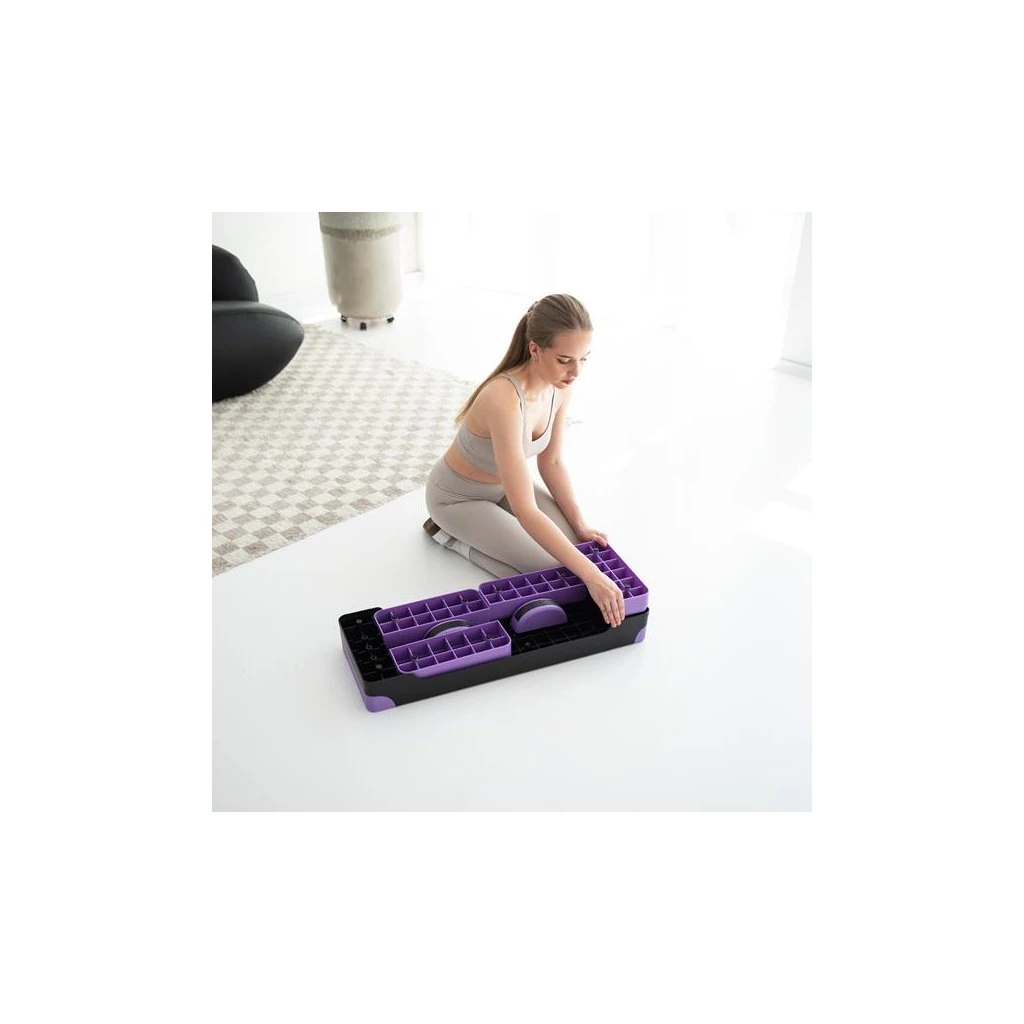 Stejně jako jeho menší protějšek má i AS008L balanční podložky, které se upevňují ze spodní strany stepu. Díky nim se klasický můstek mění v pomůcku pro trénink rovnováhy a stabilizace, zapojuje posturálních svaly a zlepšuje motorickou koordinaci.