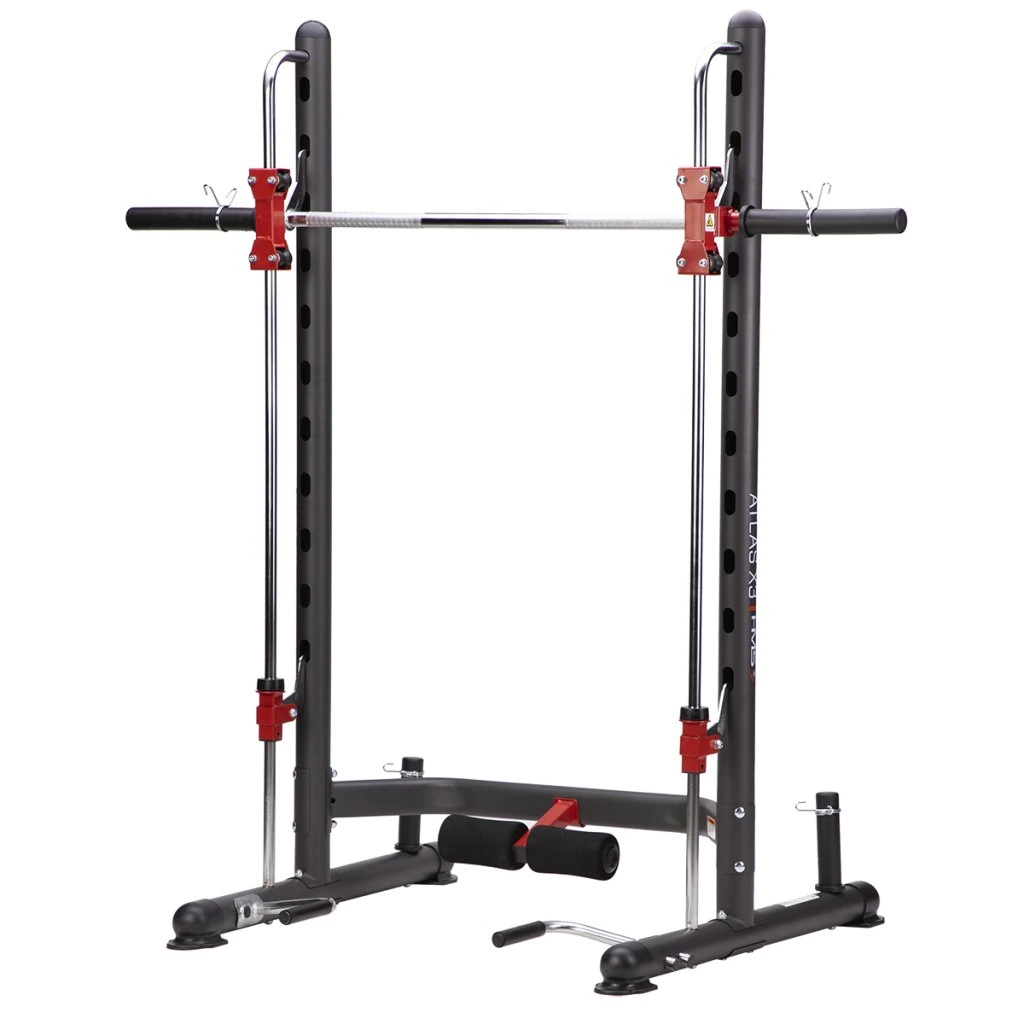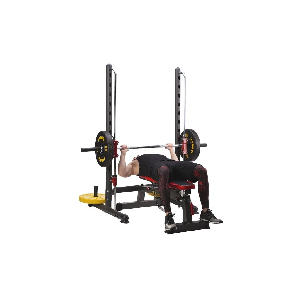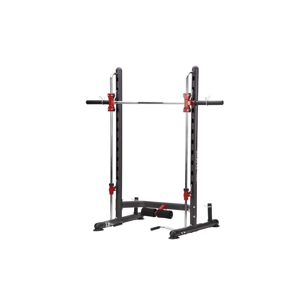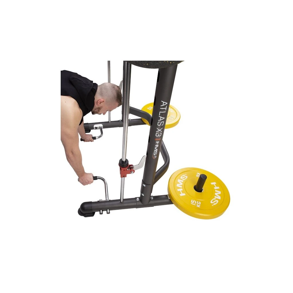Multipress HMS ATLAS X3 je ideálním nástrojem pro všechny, kdo chtějí začít, nebo již mají zkušenosti se silovým tréninkem. Hlavní charakteristikou každého multipressu jsou kolejnice, po kterých se pohybuje vzpěračská osa s háky. Tyto háky zapadají to otvorů v konstrukci a tento systém má hned dvě funkce: