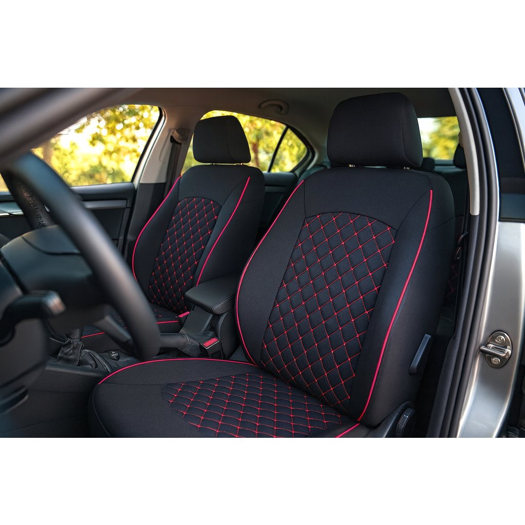 Dodejte interiéru vašeho vozu svěží, stylový vzhled a zároveň chraňte originální čalounění před opotřebením, nečistotami a skvrnami. Tyto univerzální potahy na přední sedadla v atraktivní černo-růžové kombinaci spojují praktickou ochranu s pohodlím pro každodenní jízdu i delší cesty.