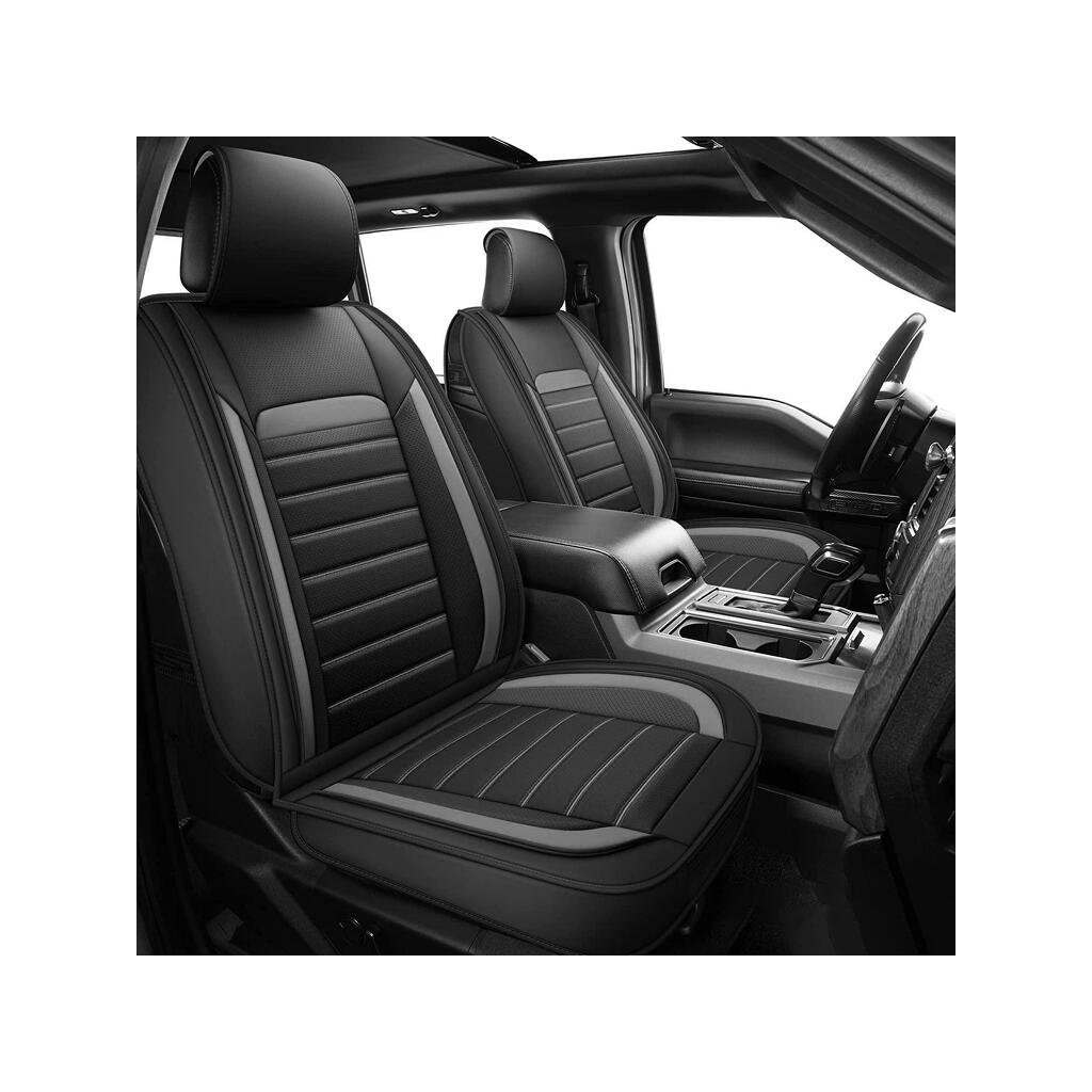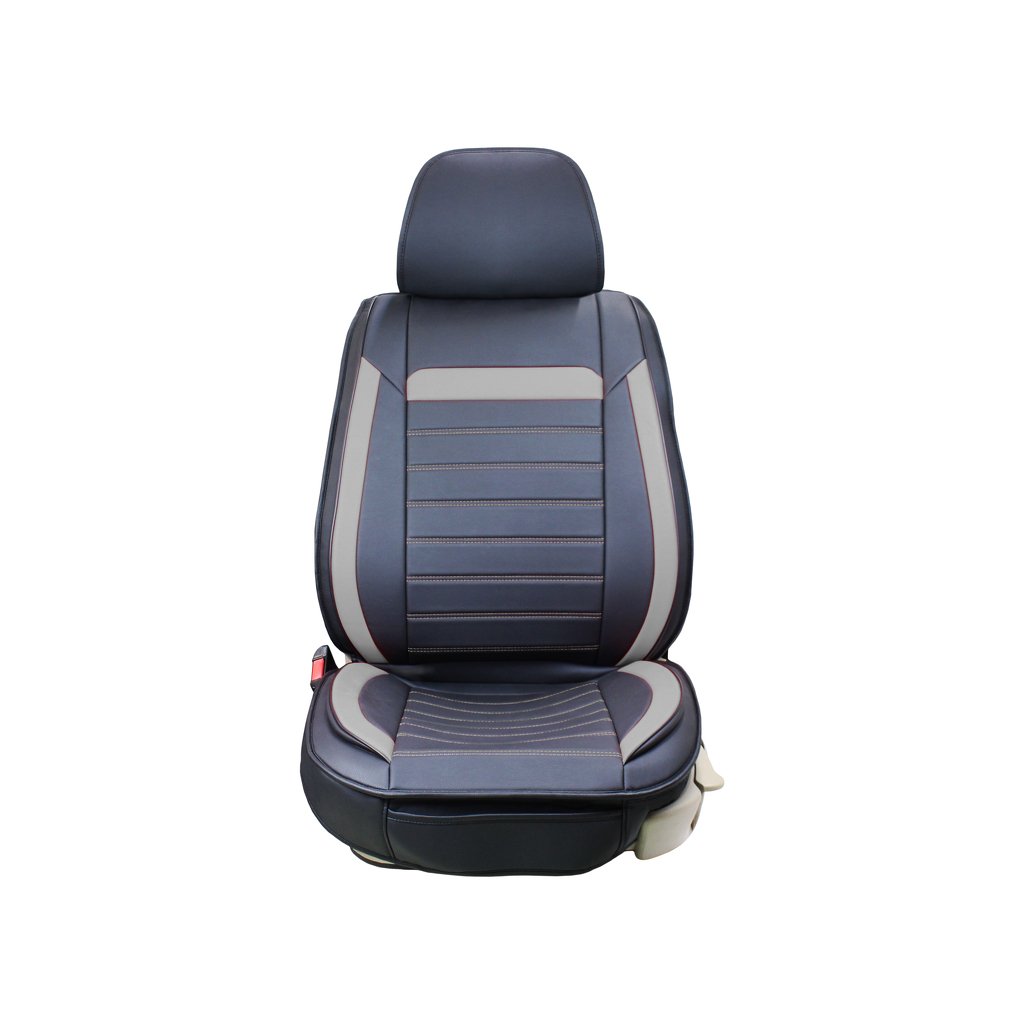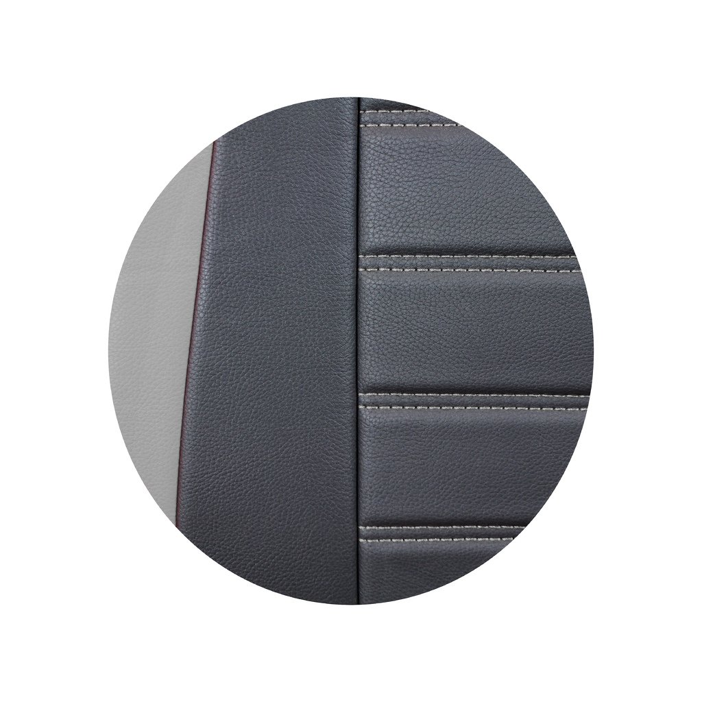 Univerzální autopotahy, sada pro 5 sedadel. Eko kůže. Homologovány pro boční airbagy. Včetně opěrek hlavy, vhodné pro sklopná sedadla, zadní loketní opěrku a 3. bezp. pás. Černo-šedá barva.