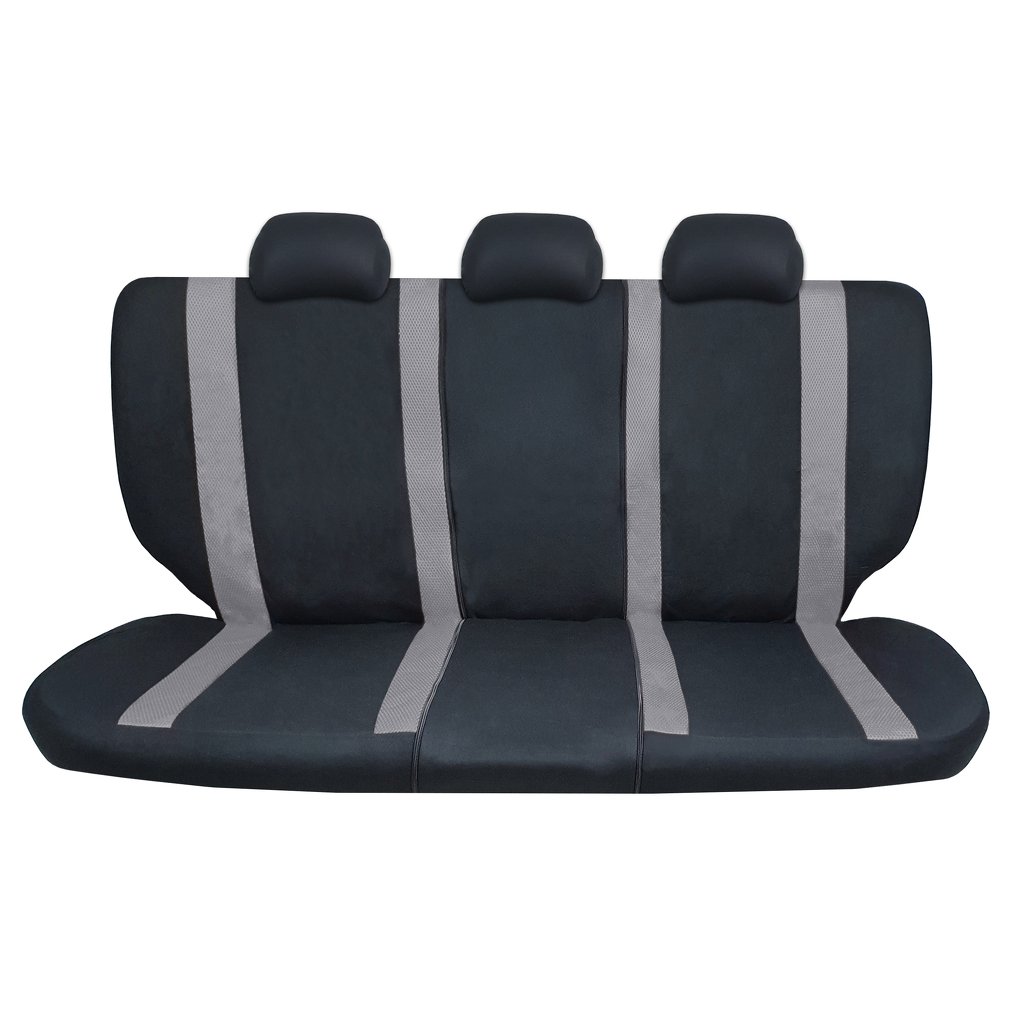 Autopotahy s výšivkou FABIA, polyester - pěna, sada pro 5 sedadel, pro dělitelná i nedělitelná zadní sedadla v poměru 1-3 na obě strany, včetně opěrek hlavy, homologováno pro boční airbagy, barva černá-šedá.