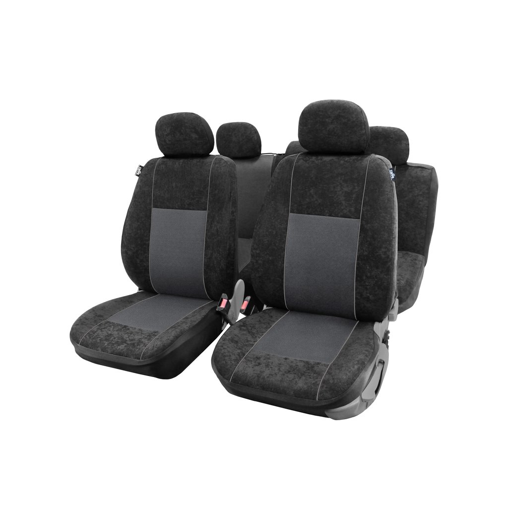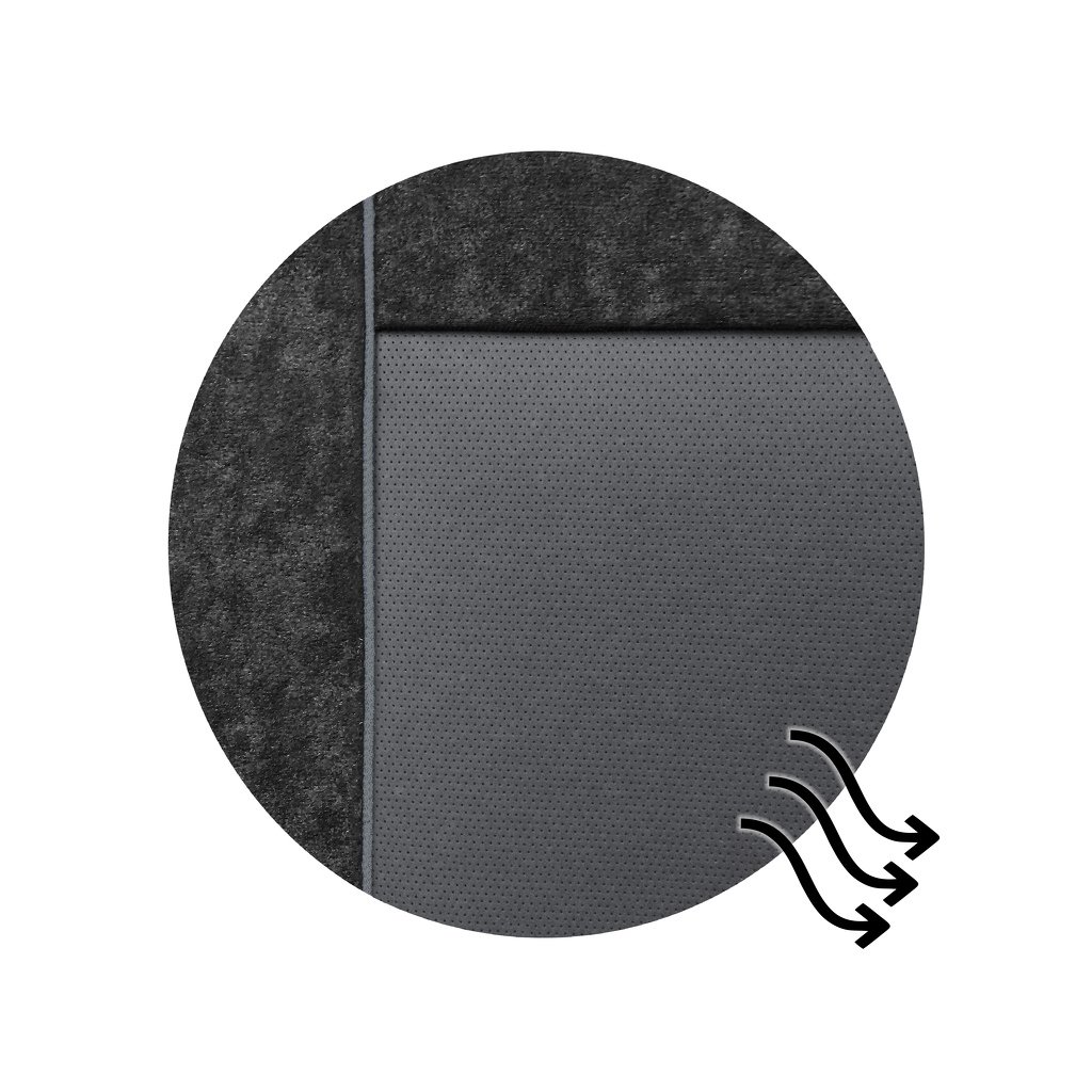 Autopotahy neklouzají po sedadle díky měkkému molitanu na vnitřní straně potahu. Středové části jsou vyrobeny z jemně perforované eko kůže. Boky ze semišové čalounické tkaniny v alcantarovém stylu a záda z elastického polyesteru.