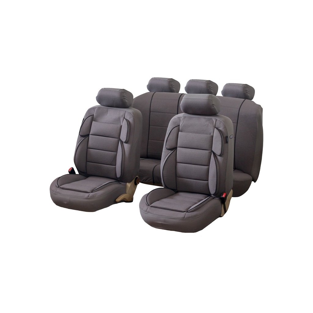 Univerzální autopotahy Yaseen šedá, polyester - pěna, sada pro 5 sedadel, pro dělitelná i nedělitelná zadní sedadla v poměru 1 3 na obě strany, včetně opěrek hlavy, homologováno pro boční airbagy.