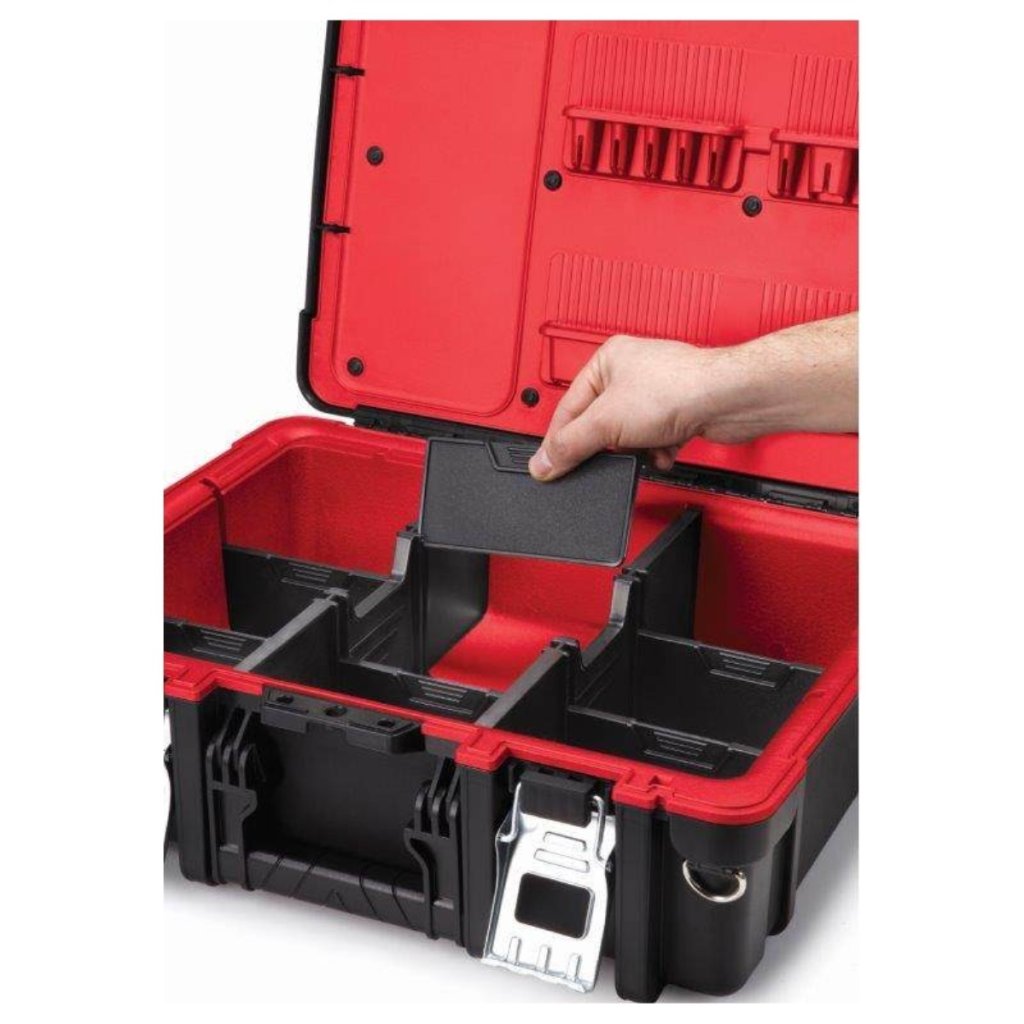 Praktická skříňka s velkým objemem. Její vnitřek usnadňuje skladování nářadí různých velikostí, Organizér ve skříňce umožňuje snadnější přístup k nejčastěji používanému nářadí. Výrobek byl navíc vybaven vyjímatelným Organizérem s přepážkami. Díky pohodlnému držadlu lze skříňku bez problému přenášet. Produkt byl vyroben z vysoce kvalitních materiálů, což zajišťuje jeho stálost a odolnost.