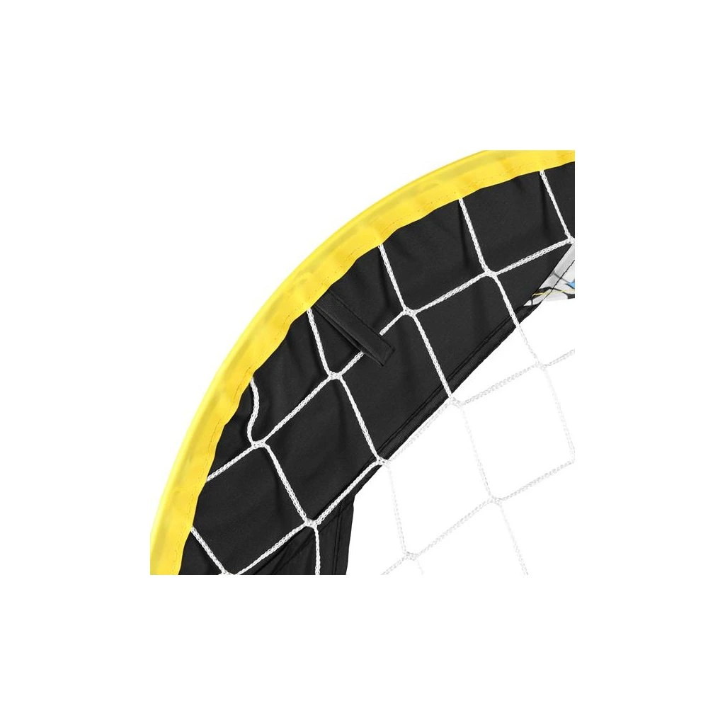 Branka je vyrobena z kvalitních materiálů. Konstrukce stojí na flexibilních, ale zároveň odolných prutech ze sklolaminátu, což zajišťuje trvanlivost a odolnost proti deformacím. Síť z polyesteru garantuje odolnost proti protržení a vlivům počasí. Navíc jsou součástí sady tři kovové kolíky pro pevné upevnění branky k zemi, i při silnějším větru nebo intenzivní hře.