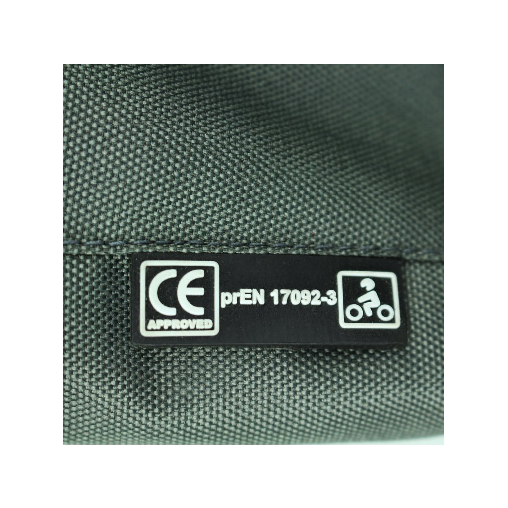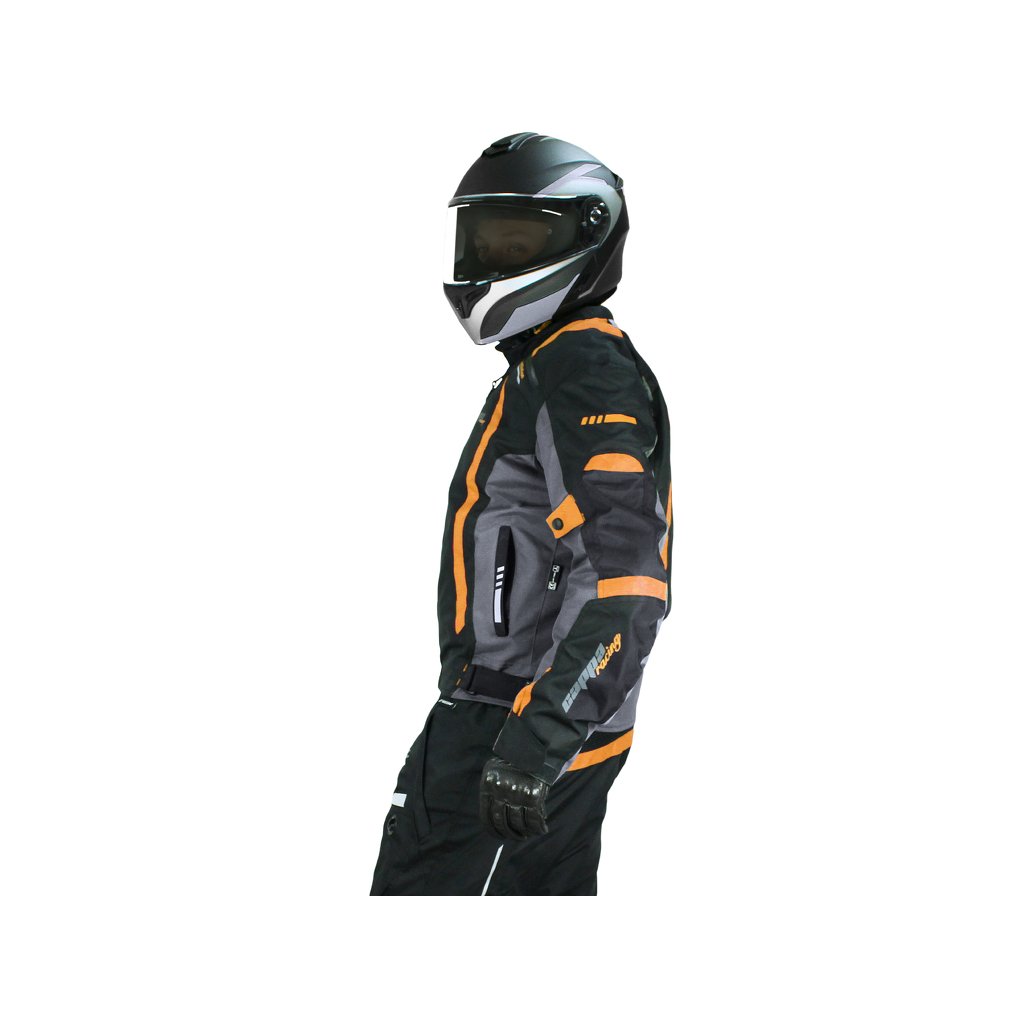 Krátká, pánská textilní bunda na motocykl. Certifikovaná s vyjímatelnými chrániči ramen, zad a loktů. S vyjímatelnou tepelnou a nepromokavou vložkou, ventilačními otvory a zipem pro spojení s kalhotami.