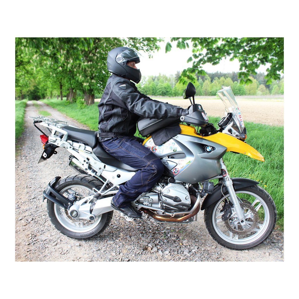 - Nadčasový vzhled: čisté linie v černé barvě, snadno kombinovatelné s textilními i koženými kalhotami.