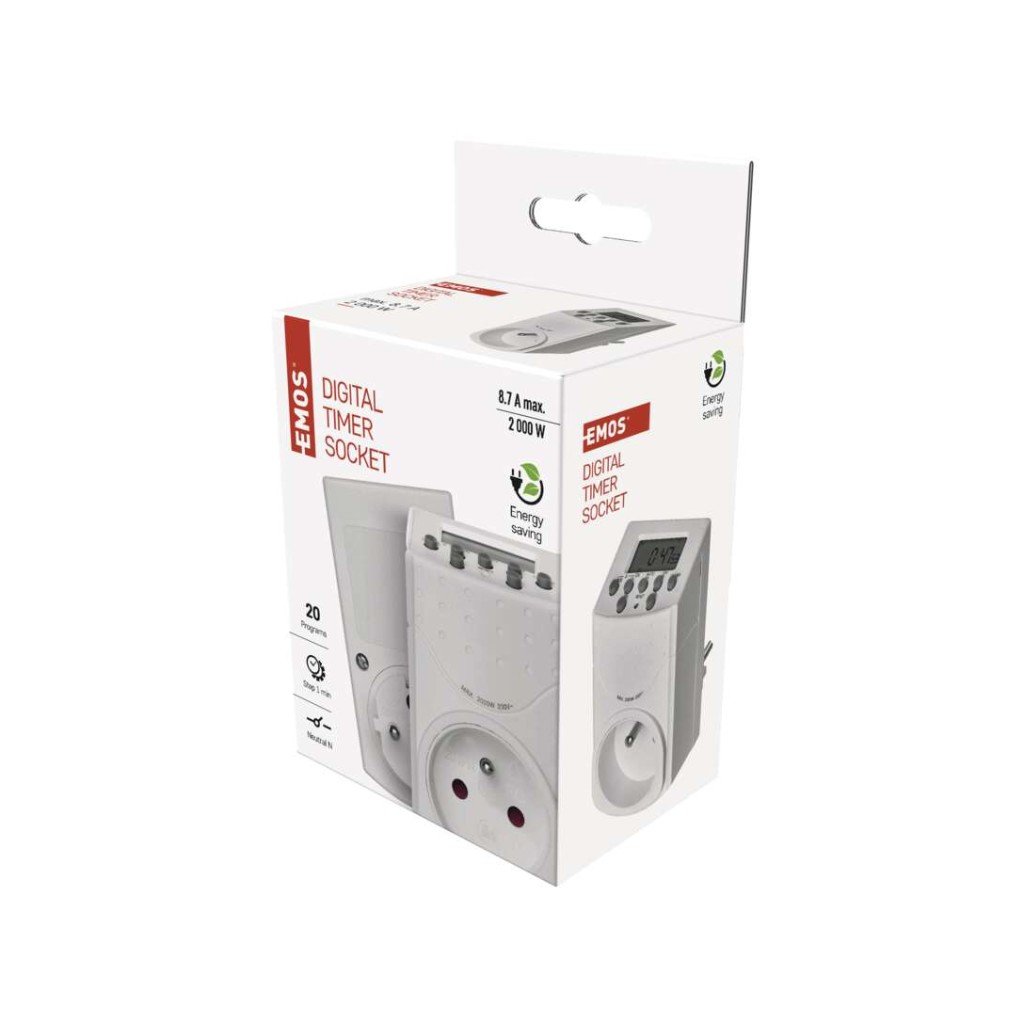 Časovač – digitální spínací zásuvka IP20 EMOS