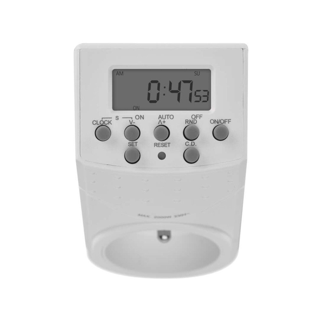 LCD displej ukazuje stav nastavení programu a reálný čas. Maximální počet programů pro vypnutí/zapnutí je 140 za týden. Tato digitální spínací zásuvka, nebo-li časovač, je ideální pro nastavení zapnutí a vypnutí jakýchkoliv elektrických spotřebičů. Je spolehlivý i ve Vaší nepřítomnosti.