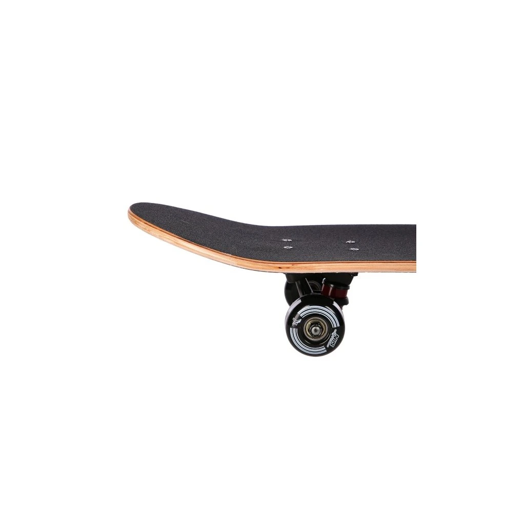Deska o rozměru 78x20 cm, 9-vrstvá, laminovaná překližka. Oboustraně profilovaná. Kolečka PU 54x36 mm, 98A. Ložiska ABEC 7. Nosnost 100 kg, hmotnost 2,17 kg.
