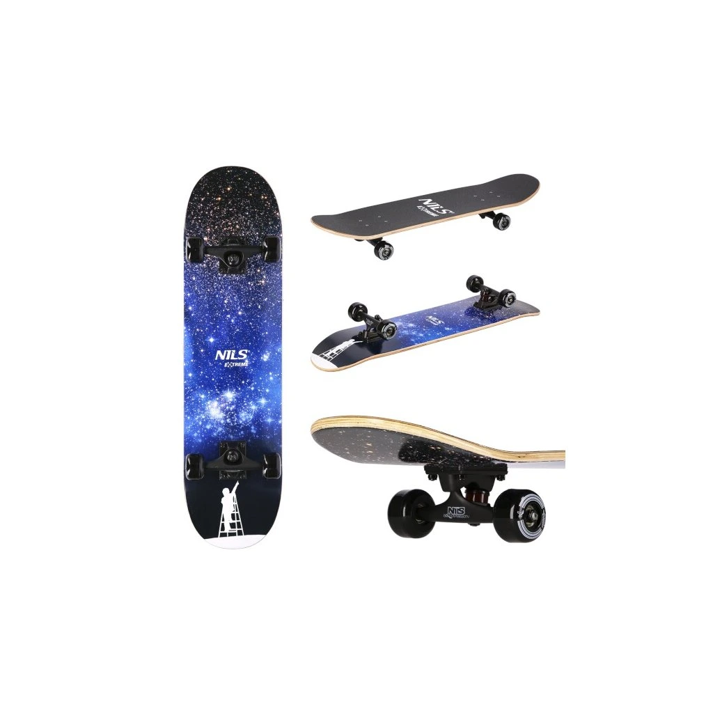 NILS Extreme CR3108SA Space Star je skateboard s moderním designem a robustní konstrukcí, který je ideální jak pro jízdu ve městě, tak pro náročné triky na rampě. Skateboard CR3108SA je určen pro začátečníky i zkušenější uživatele.