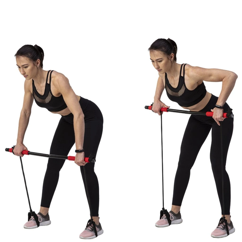 Jako příklad uvadíme cvik, kdy se na tyč postavíte a expadnéry přitahujete směrem k tělu. Případně si rukojeti expandérů nasadíme na chodidal a přitahujeme tyč.