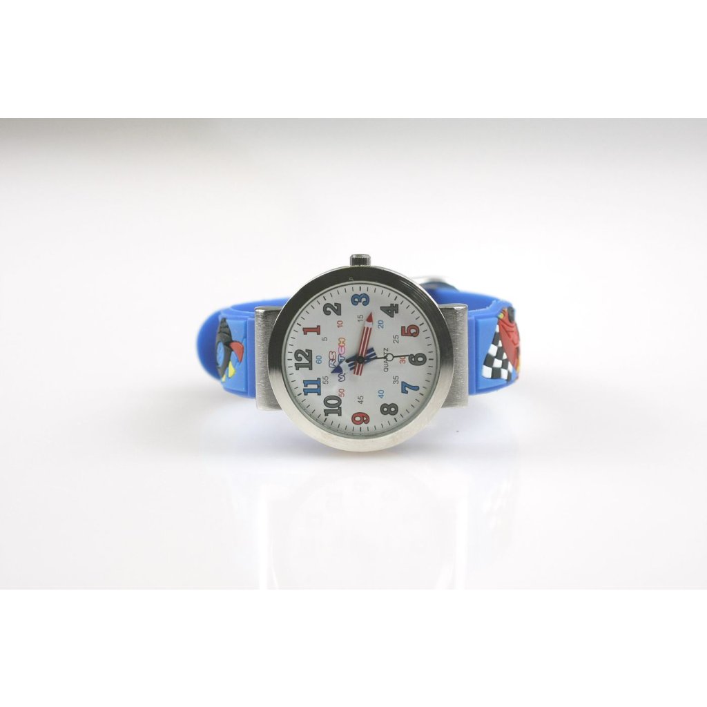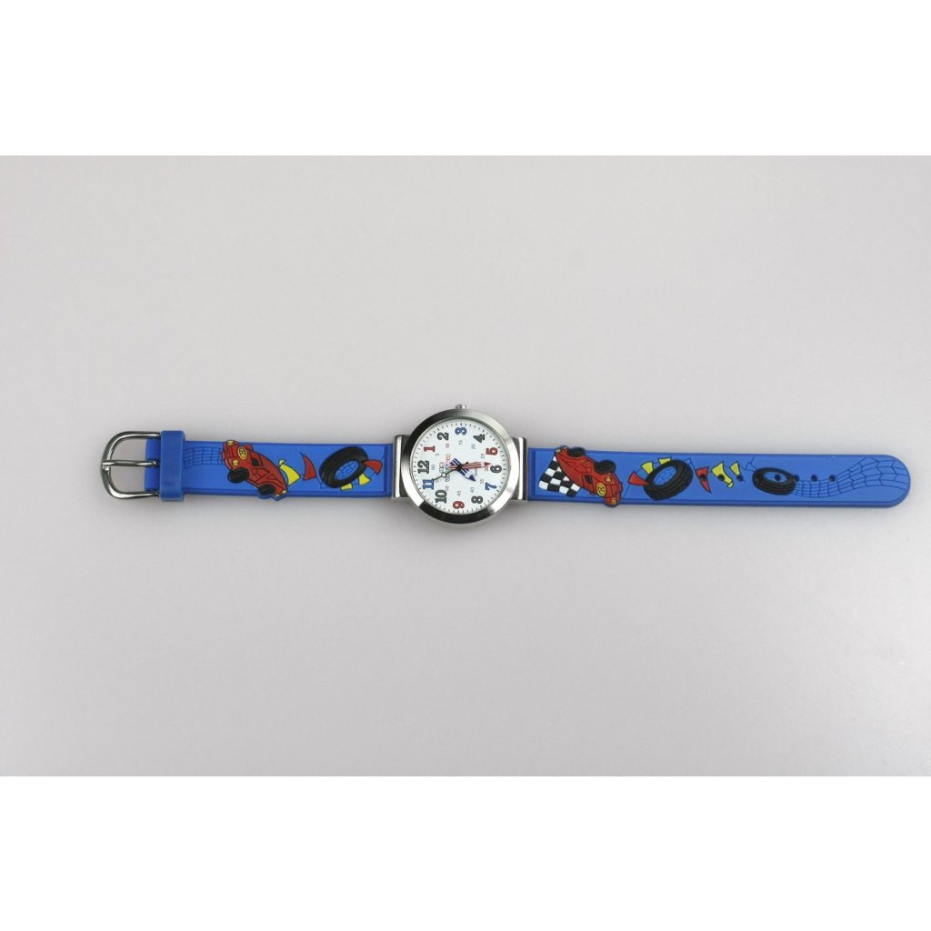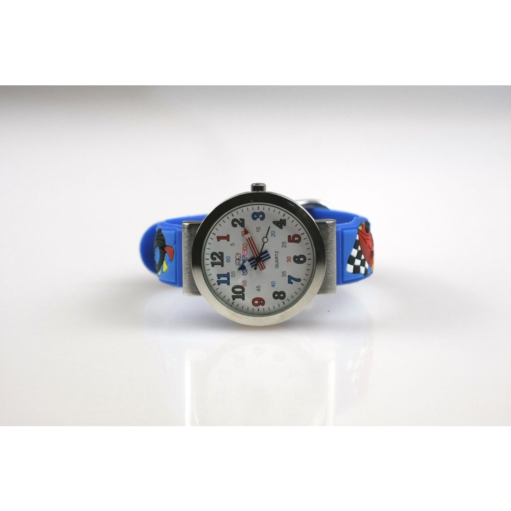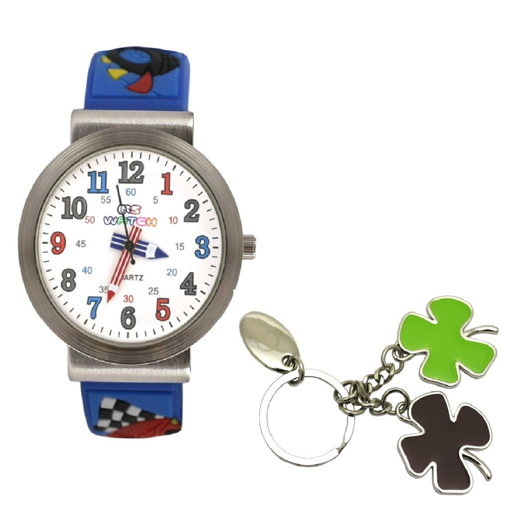 Dětské hodinky pro chlapce + přívěsek na klíče čtyřlístek pro štěstí, systém Quartz se značkovým strojkemSEIKO, modrý antialergický řemínek se sportovními motivy.