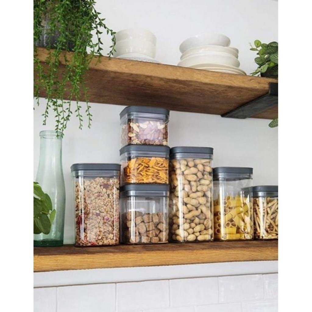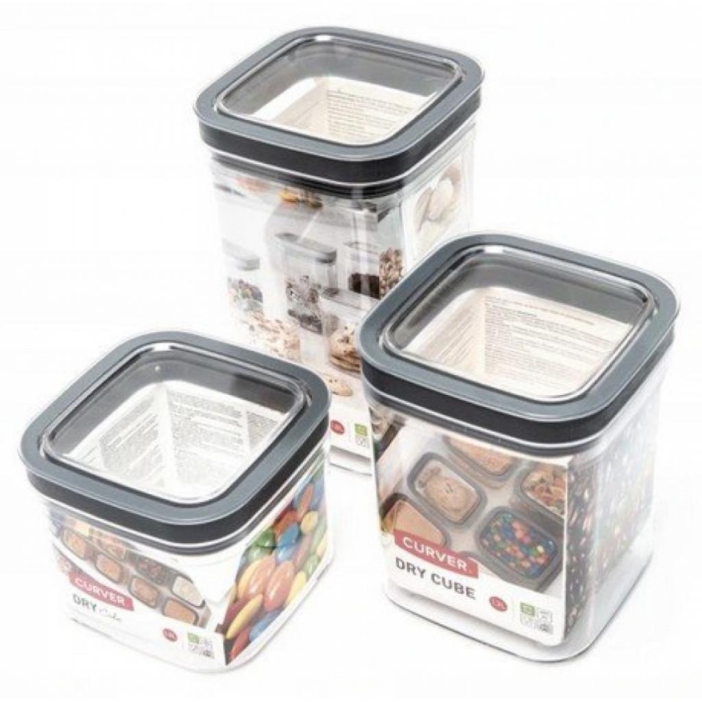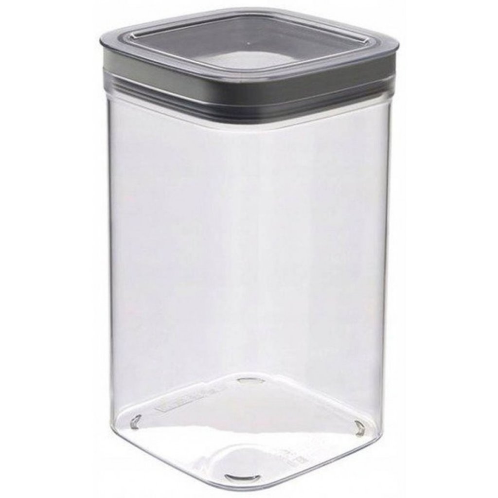 Průhledná plastová dóza DRY CUBE praktická pro uchování potravin, možné využít na bonbony pro děti, koření, těstoviny, sušené ovoce či ořechy, praktické silikonové těsnění pro ochranu uchovaných potravin před vlhkostí, pachy, hmyzem a proti vysypání, možné umý v myčce, objem 2,3L, rozměry 24,5 x 12 x 12 cm.