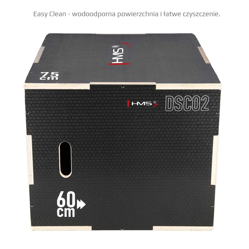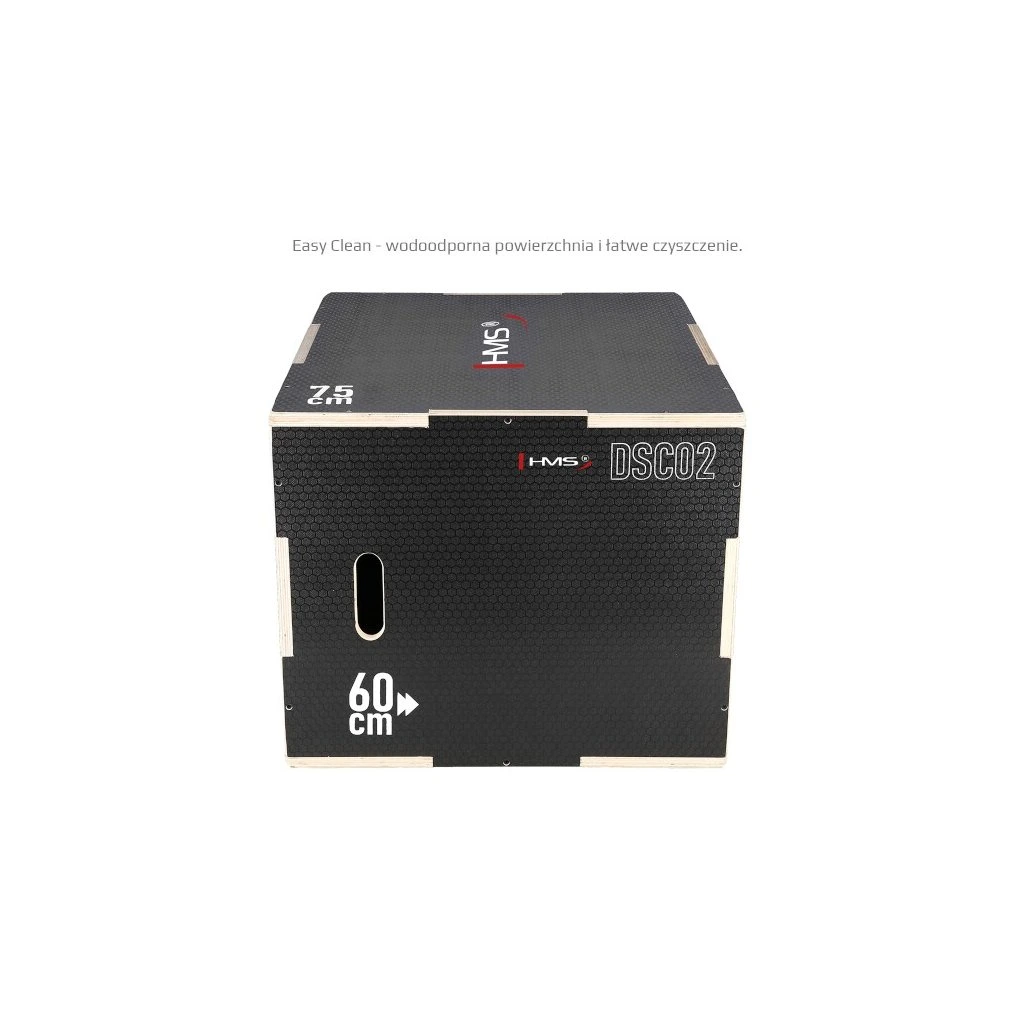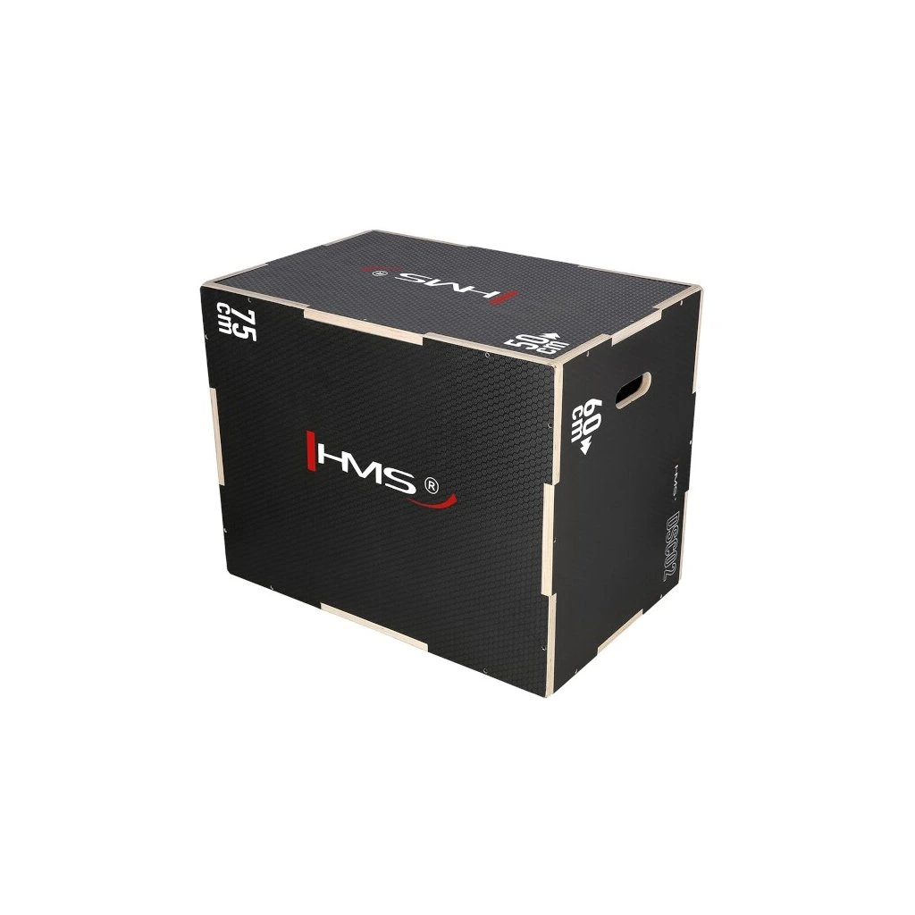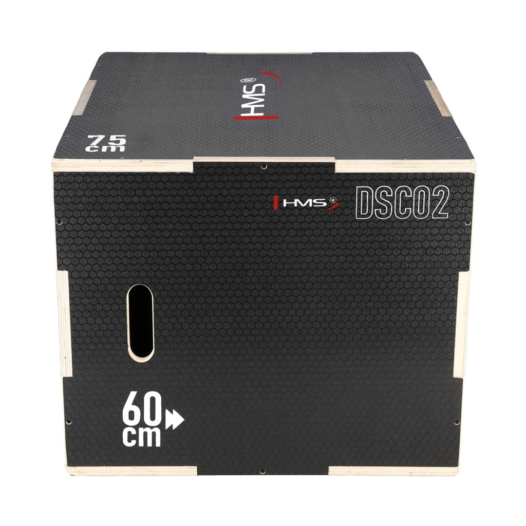 Plyometrický box HMS DSC02 je bedna určena pro kondiční trénink. Box je nedílnou součástí každého fitnesscentra, pomůckou profesionálních sportovců nebo i atletů. Vyroben je z 18 mm překližky a má klasické rozměry 75 x 60 x 50 cm (30 x 24 x 20 palců)..