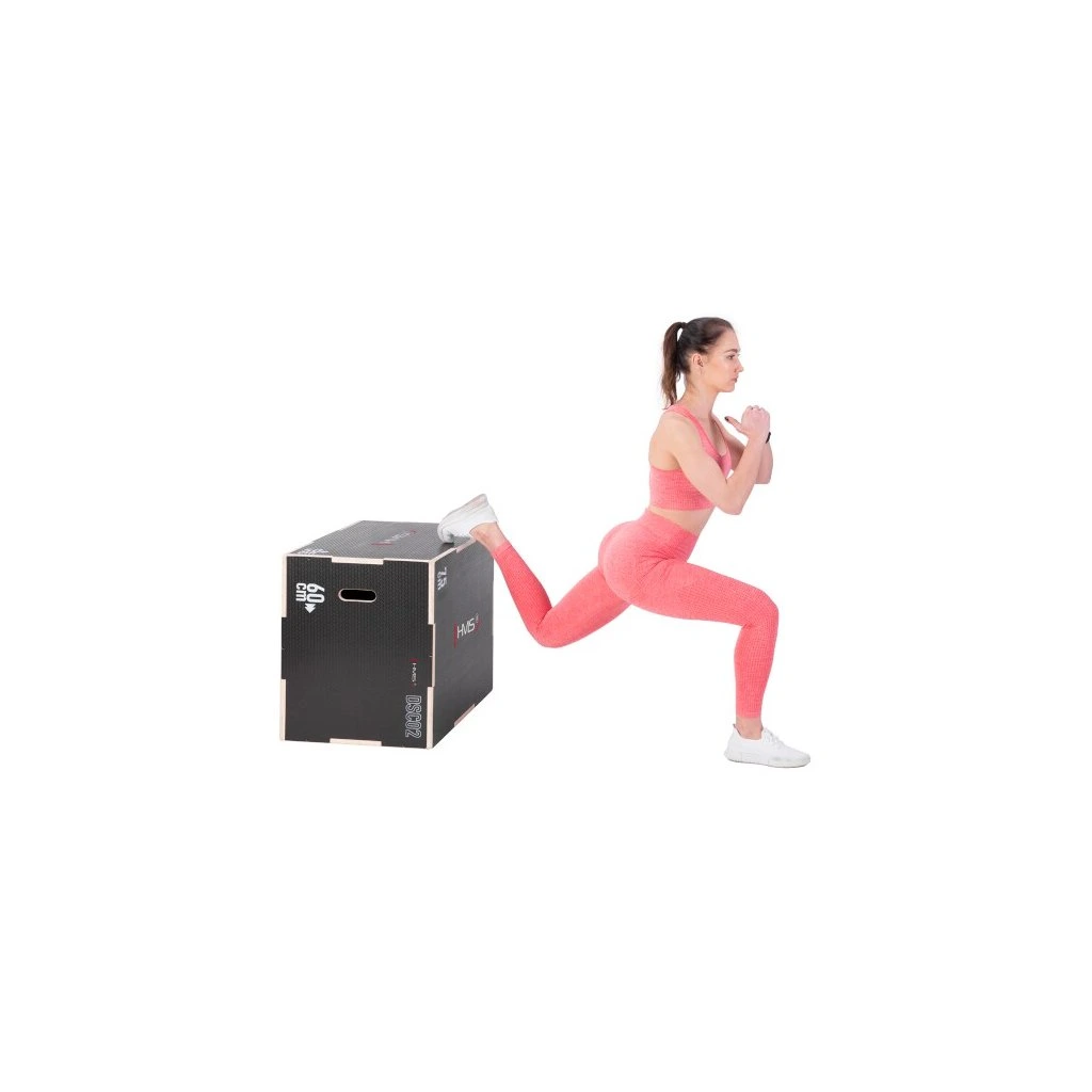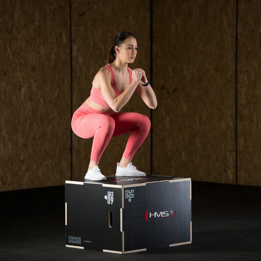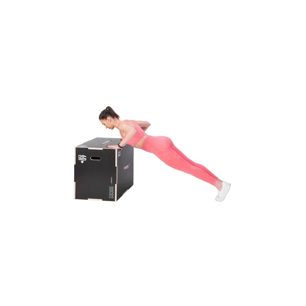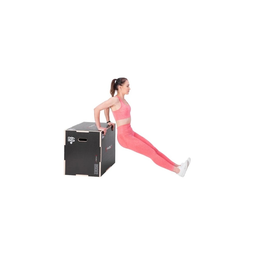 Plyometrický box HMS DSC02 je bedna určena pro kondiční trénink. Box je nedílnou součástí každého fitnesscentra, pomůckou profesionálních sportovců nebo i atletů. Vyroben je z 18 mm překližky a má klasické rozměry 75 x 60 x 50 cm (30 x 24 x 20 palců)..