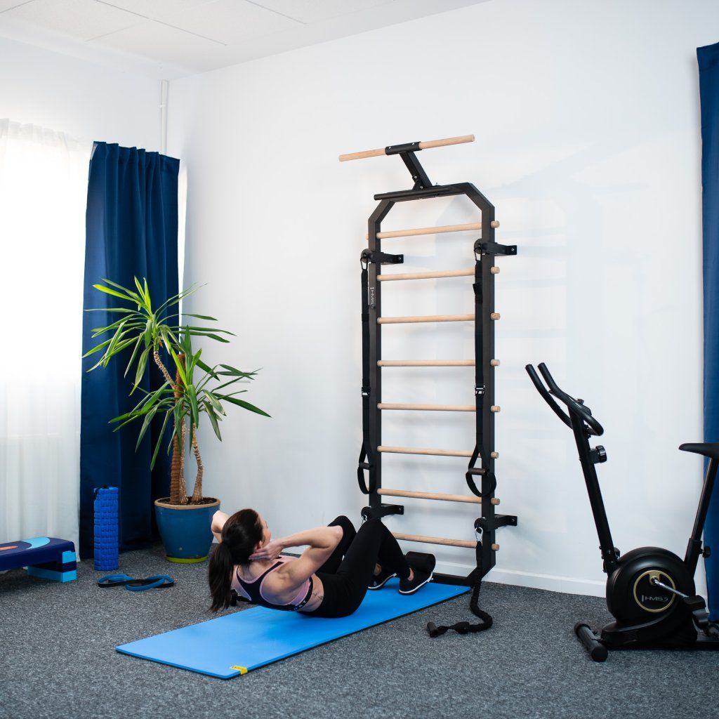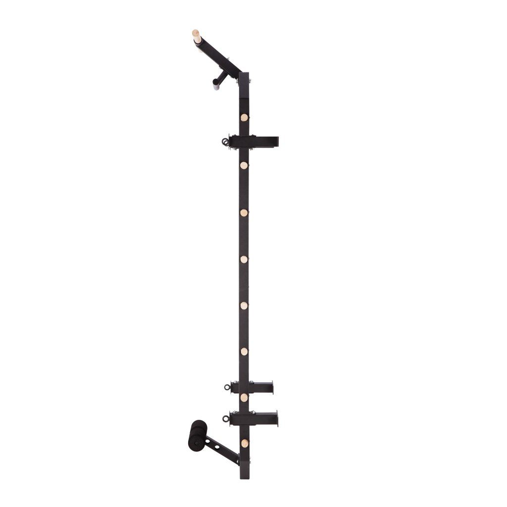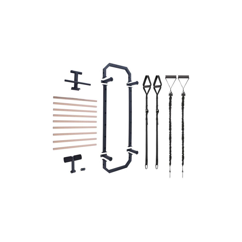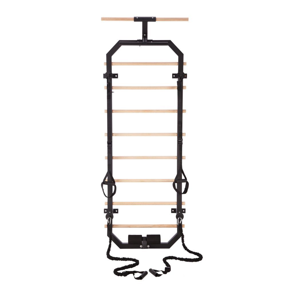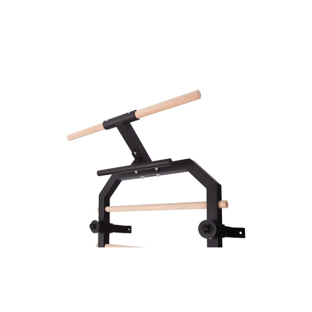 Příčky z bukového dřeva se po instalaci do žebřiny zajišťují šroubem ze zadní strany konstrukce, takže pevně drží na svém místě a neprotáčí se. V horní části žebřin se nachází 80 cm široká hrazda a kovová "polo hrazda" která slouží například k instalaci popruhů, nebo expandérů, ty lze také připevnit k ocelovým okům na 4 vzpěrách. Ve spodní části se nachází zarážka nohou pro trénink sed-lehů. Pro maximální pohodlí jsou zarážky opatřeny pěnovými válci.