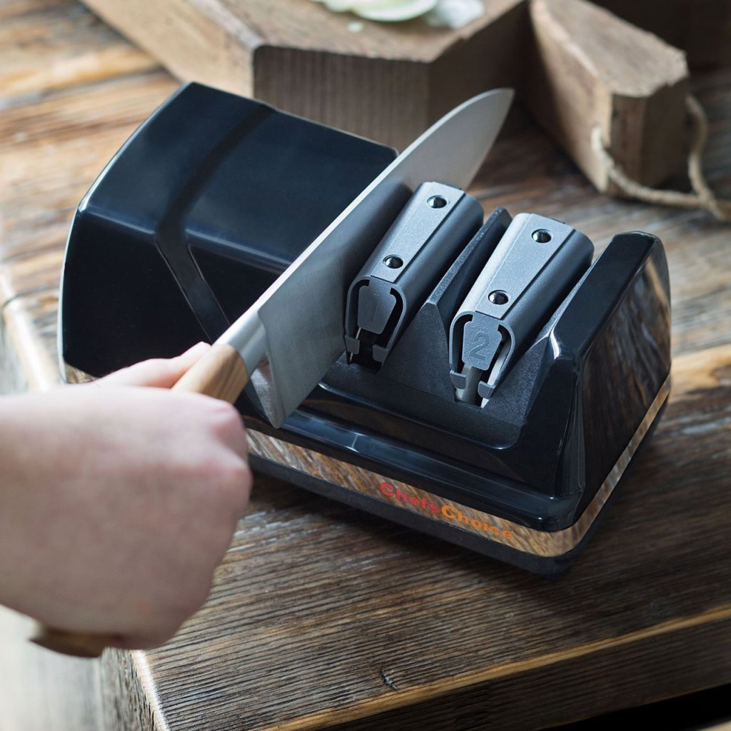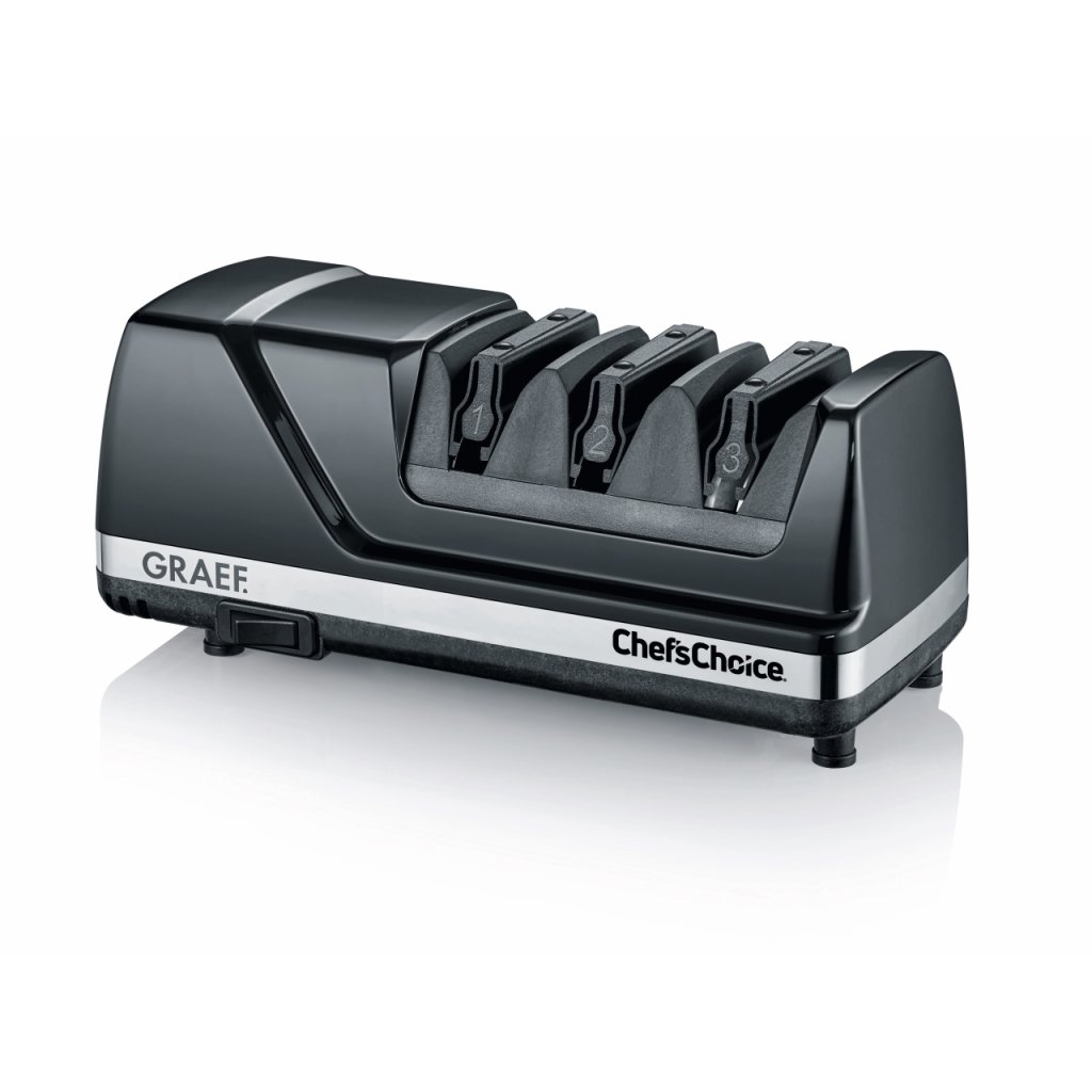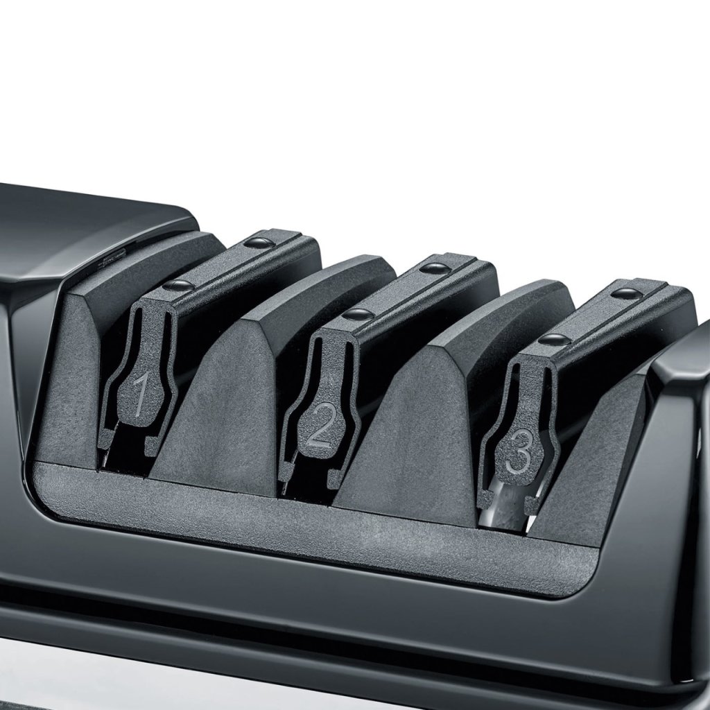 Elektrický brousek na nože s diamantovými kotouči - Diamant je nejtvrdší ze všech drahokamů. Takto lze nože brousit jemně, rychle a přesně. Je vyloučeno přehřívání a tím měknutí materiálu