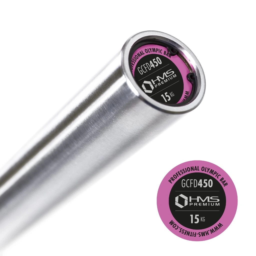 Olympijská osa GCF450 HMS PREMIUM byla vyrobena ze speciální chromované oceli, která prošla procesem kalení. Produkt HMS se vyznačuje pevností v kombinaci s dokonalou pružností. Součástí soupravy jsou dva plastové uzávěry ZG1000. Pevné a pohodlné uchopení hřídele je zajištěno vroubkováním na povrchu. Maximální zatížení je 450 kg.Průměr úchopové části je 25 mm a zajišťuje vysokou odolnost a pohodlí během tréninku. Použitý proces chromování hřídele je zárukou zachování jejího vzhledu po dlouhou dobu jejího používání a také je nejlepší ochranou proti korozi.Olympijská hřídel GCF450 HMS PREMIUM má 4 jehličkových ložisek (2 na každé straně), které umožňují hladké a plynulé otáčení rukávů na hřídeli. Její konstrukce snižuje napětí na koncích válečků, což má za následek vyšší životnost ložisek. Navzdory svého malého průřezu mají jehličková ložiska vysokou tuhost a nosnost.Dva plastové uzávěry nacházející se v balení zaručují stabilní rozložení zátěže na hřídeli během tréninku. Uzávěry mají ve vnitřní části gumové elementy bránící tomu, aby se závaží povolilo.