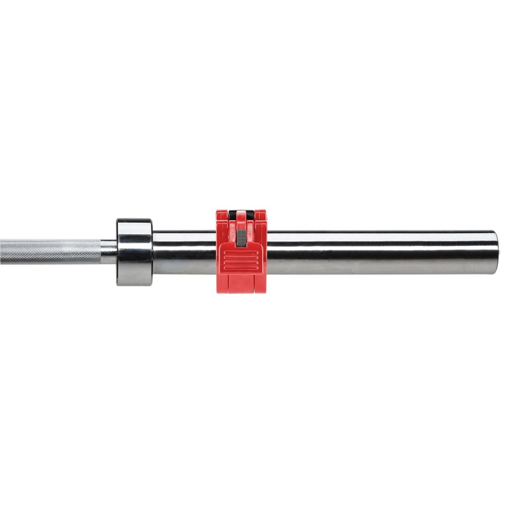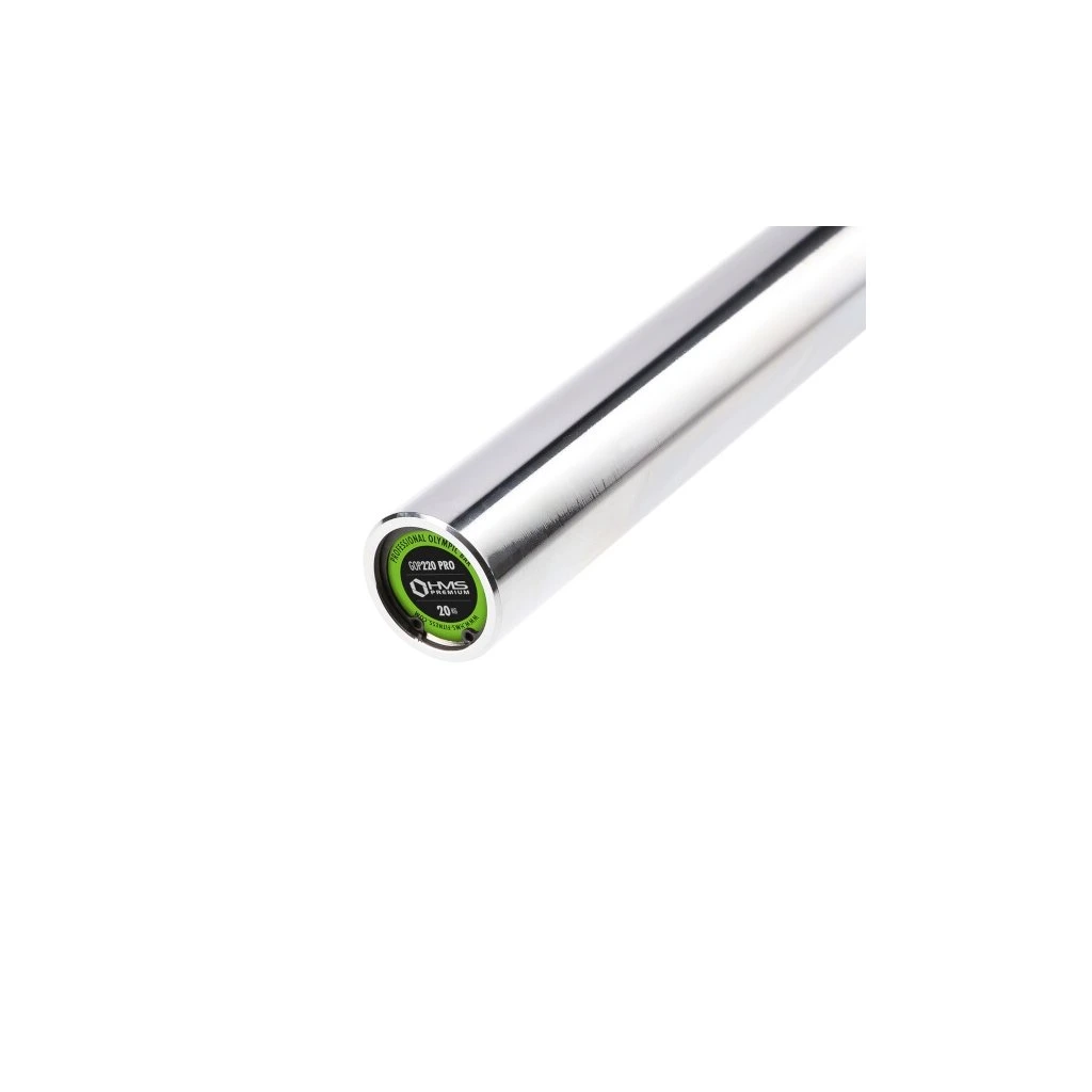 Olympijská obouruční hřídel HMS GOP220 Pro o rozměrech 220 x 5 cm. Hmotnost osy je 20 kg a maximální zatížení 250 kg. Jako zámky jsou přibaleny čelisťové zámky ZG1000.