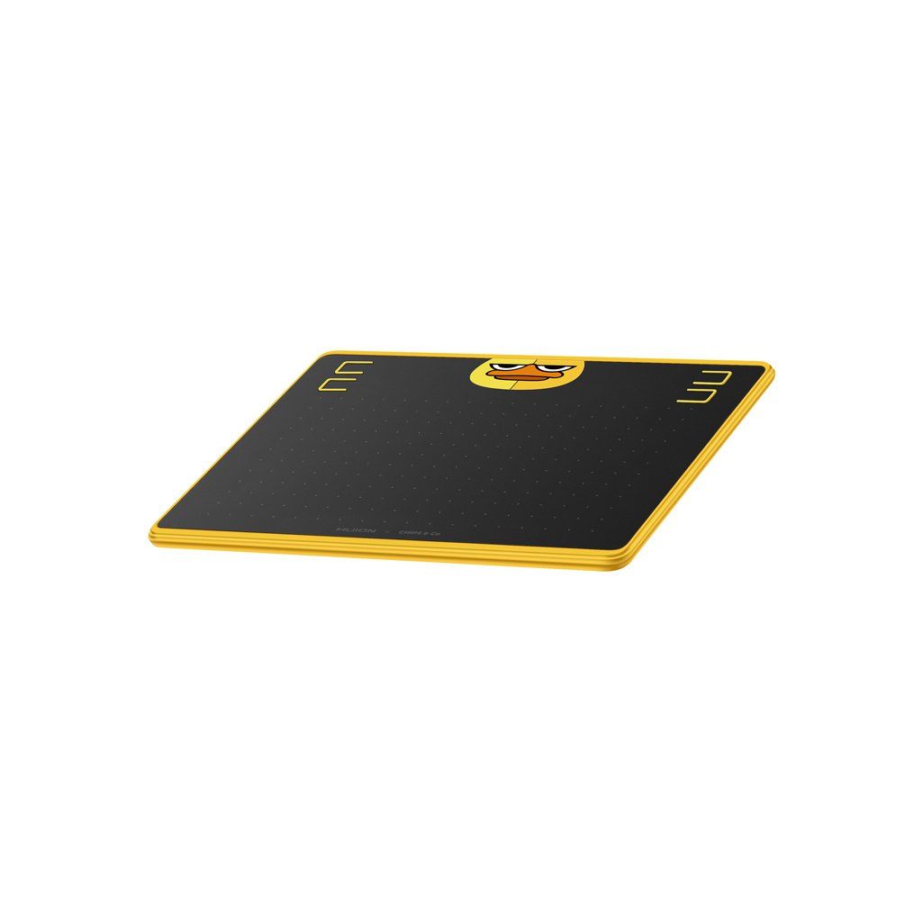 Tablet Huion HS64 SE zaujme na první pohled zábavným, okouzlujícím designem s obrázkem kreslené kachny a jemnými hvězdičkovými akcenty na povrchu. Díky tenkému provedení, jehož tloušťka je pouhých 8 mm, se zařízení snadno vejde do batohu nebo tašky, což z něj činí ideální volbu pro mobilní pracovníky nebo časté cestovatele.