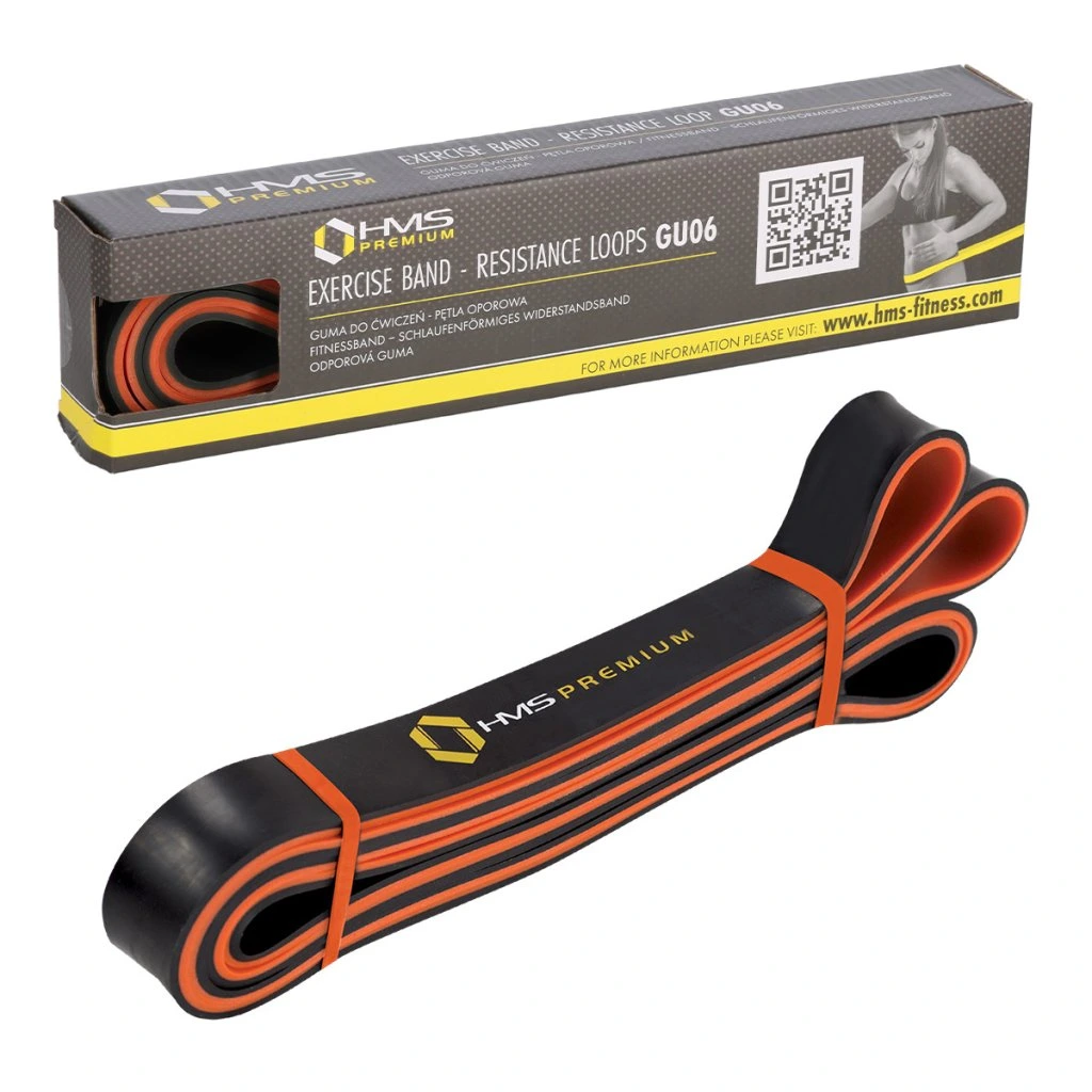 Posilovací, nebo odporová guma HMS Premium GU06 jak je tato pomůcka nazývána, se využívá zejména jako dopomoc při shybech, tricepsových klicích a dalších variacích cviků. Posilovací gumy jsou velmi často též využívány při rehabilitačním cvičení. Díky tomu, že se nejedná o přímou zátěž, ale guma postupným tahem vytváří odpor, je často užívaným rehabilitačním doplňkem při úrazech svalů, šlach a kloubů.