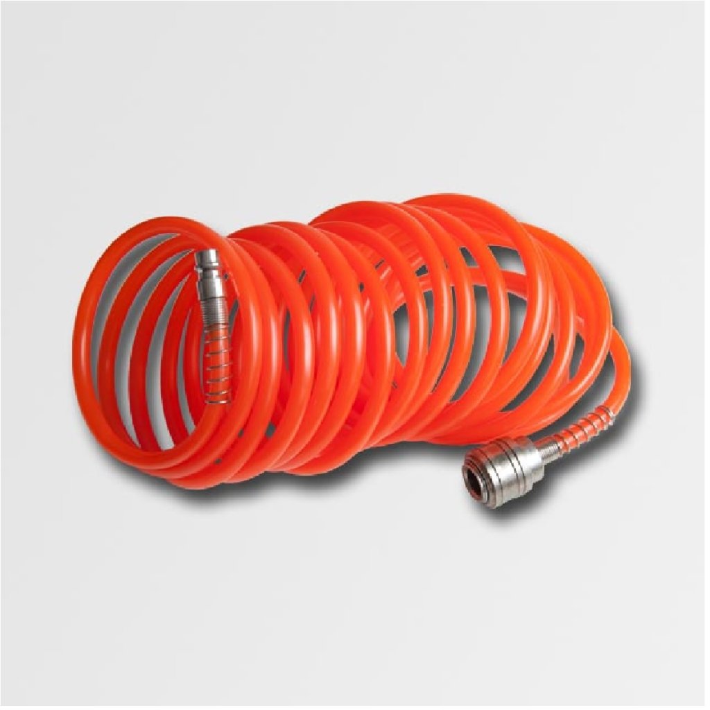 Kroucená hadice na stlačený vzduch včetně koncovek.