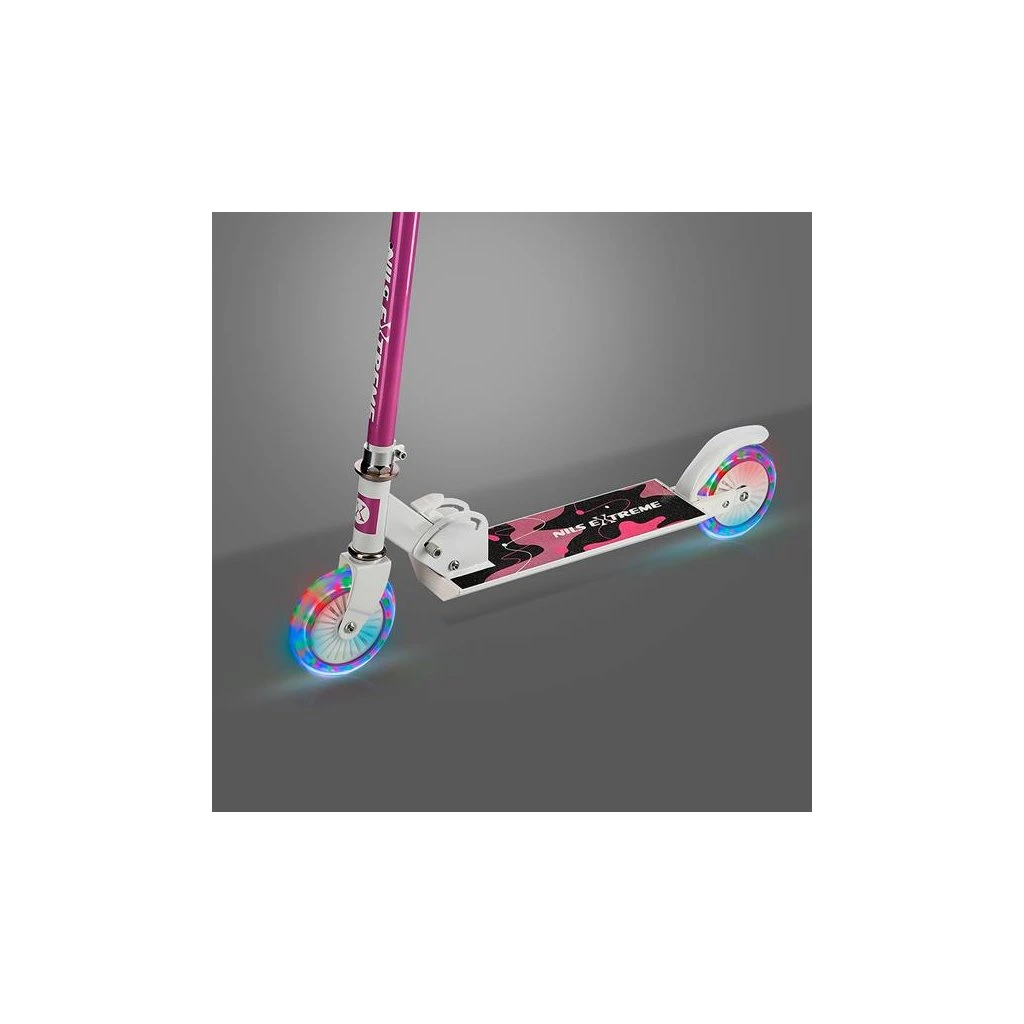 Skládací koloběžka NILS Extreme HD505 je určená především dětem. Hlavní předností tohoto modelu jsou polyuretanová kolečka o průměru 120 milimetrů, které zaručují pohodlnou jízdu. Koloběžku lze složit, takže při uskladnění nezabírá mnoho místa a zároveň si ji můžete brát téměř kamkoliv sebou ať už jedete na výlet například vlakem a nebo pokud jedete autem na dovolenou do zahraničí. Dalšími výraznými prvky jsou protiskluzová nášlapná plocha, madla z pěnového materiálu a zadní přítlačná brzda. Klademe důraz především na atraktivní vzhled a kvalitní provedení, díky kterému máte jistotu, že kupujete kvalitní koloběžku jenž potěší a zároveň i ochrání. Chcete-li pro bezpečnost udělat maximum, nezapomeňte se porozhlédnout po přilbě a chráničích.
