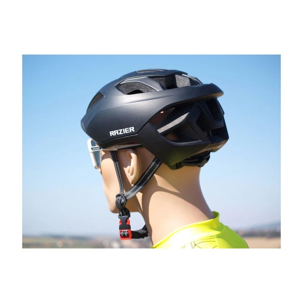 Compact, jak už vypovídá název je opravdu kompaktní, univerzální sportovní přilba. Triple In-Mold je označení pod kterým rozumíme kompletní opláštění (i spodní hrany). Elegantní, nikterak překážející, ale funkční kšilt je součástí skeletu. Ventilace o 17-otvorech společně s kvalitně provedenými větracími kanálky, antibakteriálními výstelkami a fixačním mechanismem Turn-Fit zajistí ten pravý komfort. Univerzální použití přilby je díky svému tvaru a provedení na místě. Je oblíbena u cyklo turistů, v městském provozu, ale i u MTB, In-Line, dnes oblíbených koloběžek a podobných sportovních činnostech. Toto je Razier kompaktní ochrana hlavy...