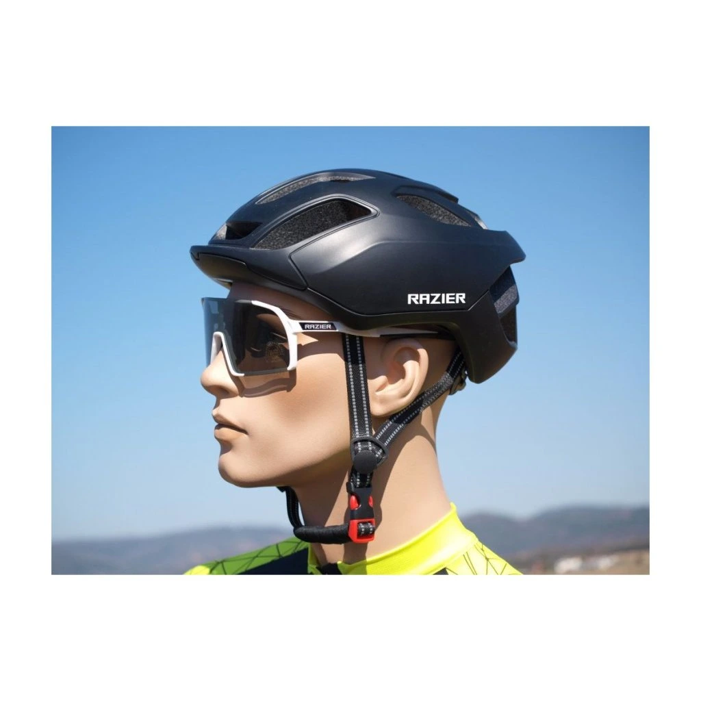 Compact, jak už vypovídá název je opravdu kompaktní, univerzální sportovní přilba. Triple In-Mold je označení pod kterým rozumíme kompletní opláštění (i spodní hrany). Elegantní, nikterak překážející, ale funkční kšilt je součástí skeletu. Ventilace o 17-otvorech společně s kvalitně provedenými větracími kanálky, antibakteriálními výstelkami a fixačním mechanismem Turn-Fit zajistí ten pravý komfort. Univerzální použití přilby je díky svému tvaru a provedení na místě. Je oblíbena u cyklo turistů, v městském provozu, ale i u MTB, In-Line, dnes oblíbených koloběžek a podobných sportovních činnostech. Toto je Razier kompaktní ochrana hlavy...