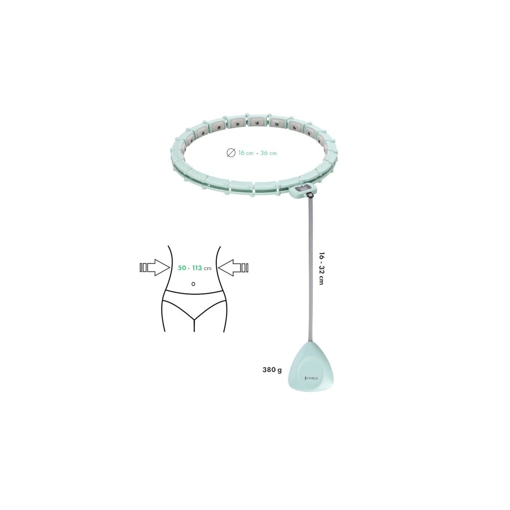HMS HHM14 je hula hop obruč s nastavitelnou délkou, masážními magnetickými výstupky a rotujícím závažím.