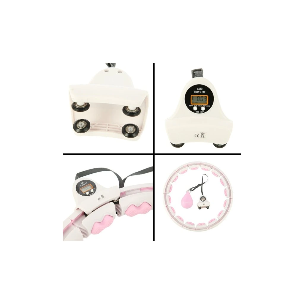 HHW06 RŮŽOVÁ MASÁŽNÍ HULA HOOP OBRUČ SE ZÁVAŽÍM A POČÍTADLEM HMS
