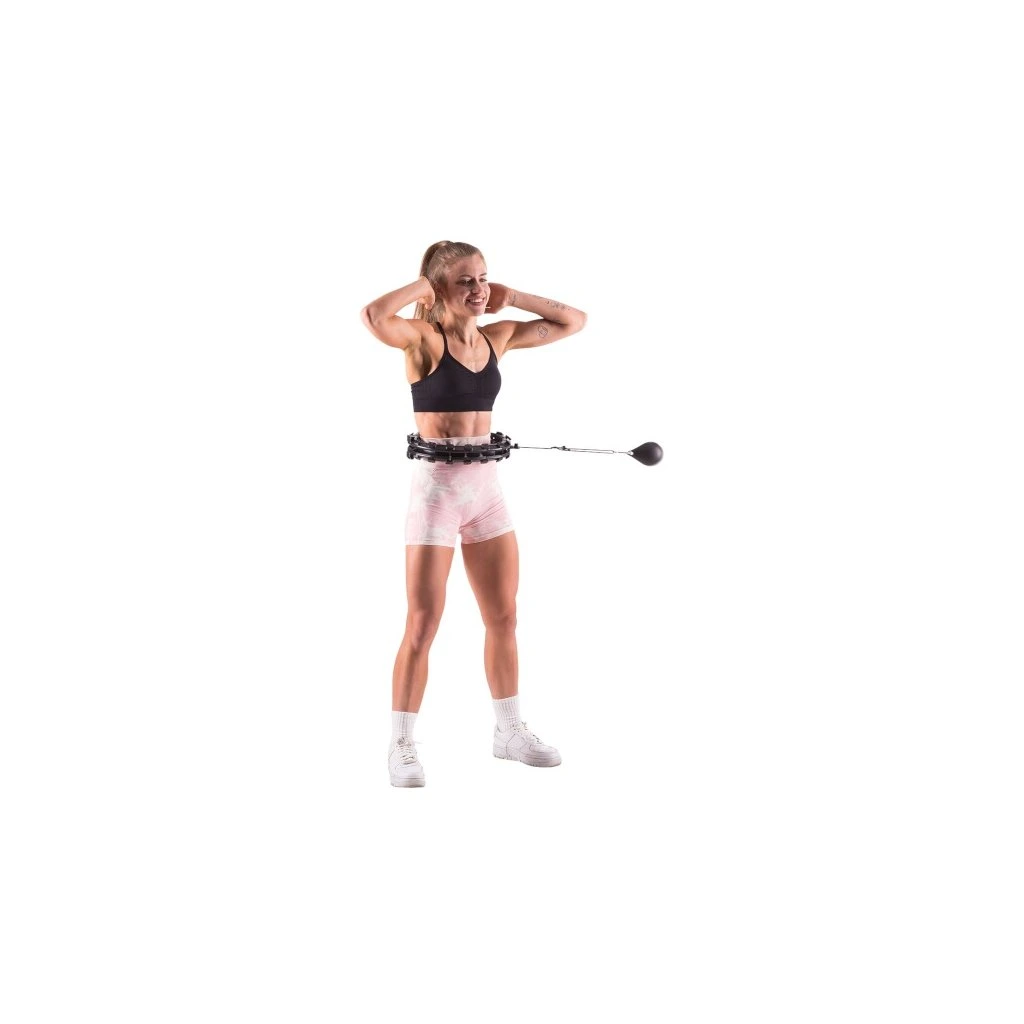 Délka obruče se nastaví podle obvodu pasu tak, aby byla dostatečně volná, ale zároveň aby nepadala přes boky. Po nastavení délky se obruč uzamkne pomocí spojovacího dílu, který je osazen páčkami pro ovládání zámku. Závaží se následně "vrhne" směrem, do kterého budeme kroutit boky a začneme trénink. Obruč HHW12 je z vnitřní strany opatřena masážními kloboučky s pružinami, které tlumí vibrace od pohybující se kotvy a zároveň příjemně masírují oblast pasu. Intensitu tréninku ovlivňuje délka provázku a rychlost, jakou kroutíme boky.