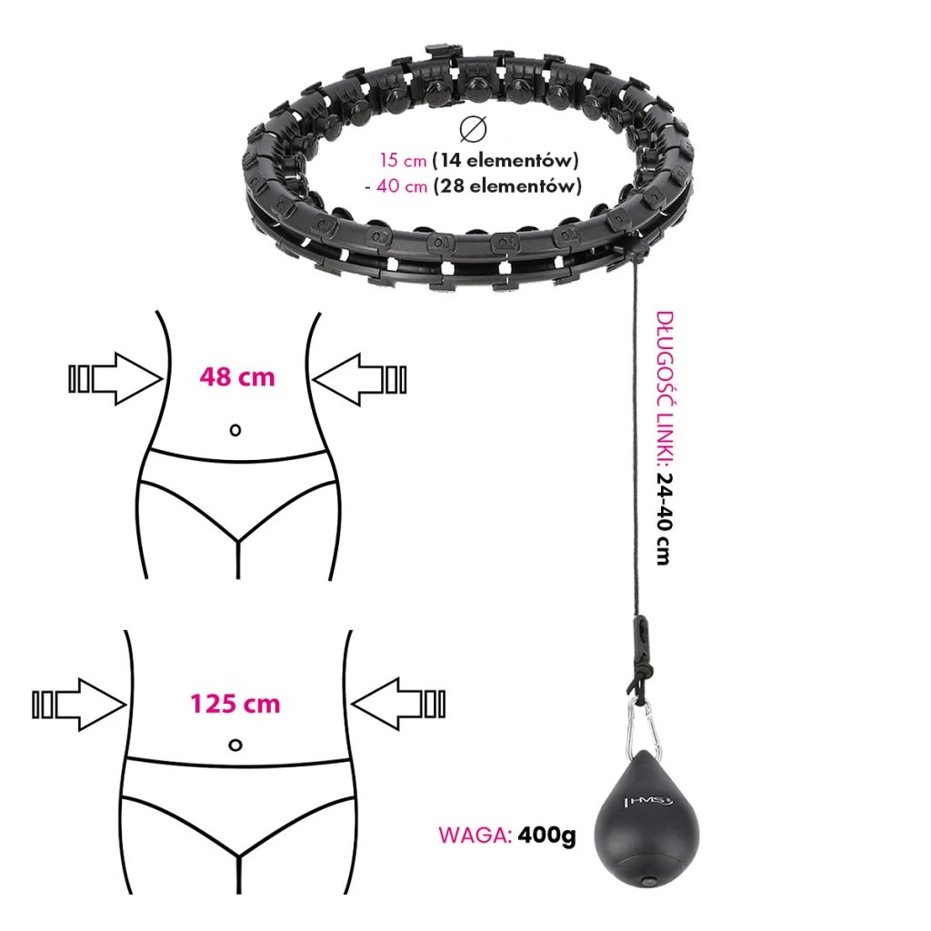 HHW12 PLUS SIZE ČERNÁ MASÁŽNÍ HULA HOOP OBRUČ SE ZÁVAŽÍM HMS