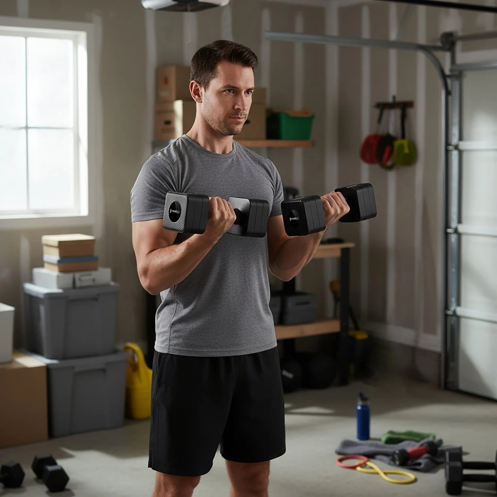 Rozpohybuj svůj fitness trénink s HL02 HMS – to jsou nastavitelné činky 2 × 5 kg s bleskovou, několikasekundovou změnou hmotnosti, protiskluzovou rukojetí a stabilním čtvercovým tvarem. Jedna sada nahrazuje pět párů klasických činek – ušetříš místo, čas i peníze.