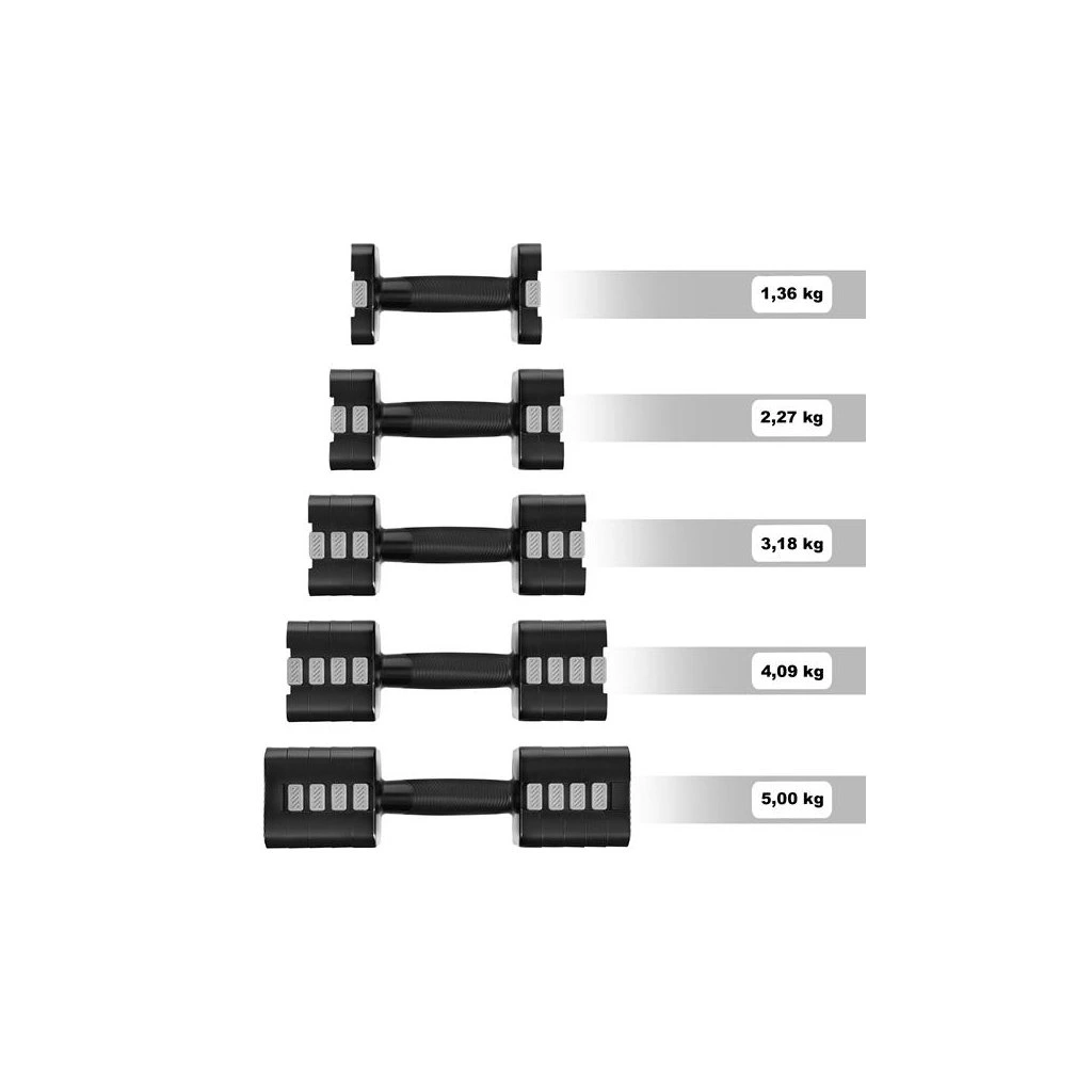 - Rozsah 1,36–5 kg na kus – ideální pro cardio, fitness, silový trénink i rehabilitaci.