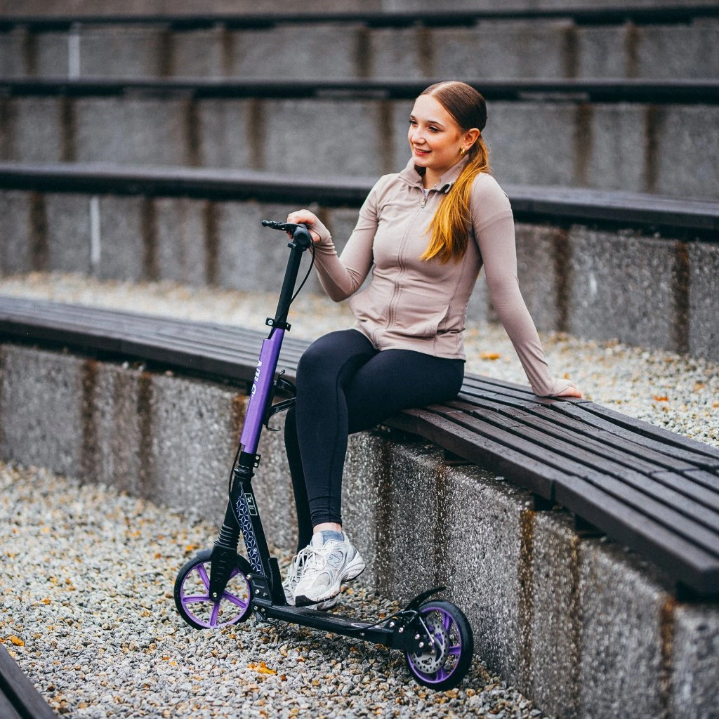 Díky velkým polyuretanovým kolečkům o průměru 200 mm a ložiskům ABEC 7 poskytuje koloběžka mimořádně hladkou jízdu. Perfektně funguje na asfaltu i zpevněných chodnících, zaručuje pohodlí a minimalizuje vibrace i na nerovném povrchu.