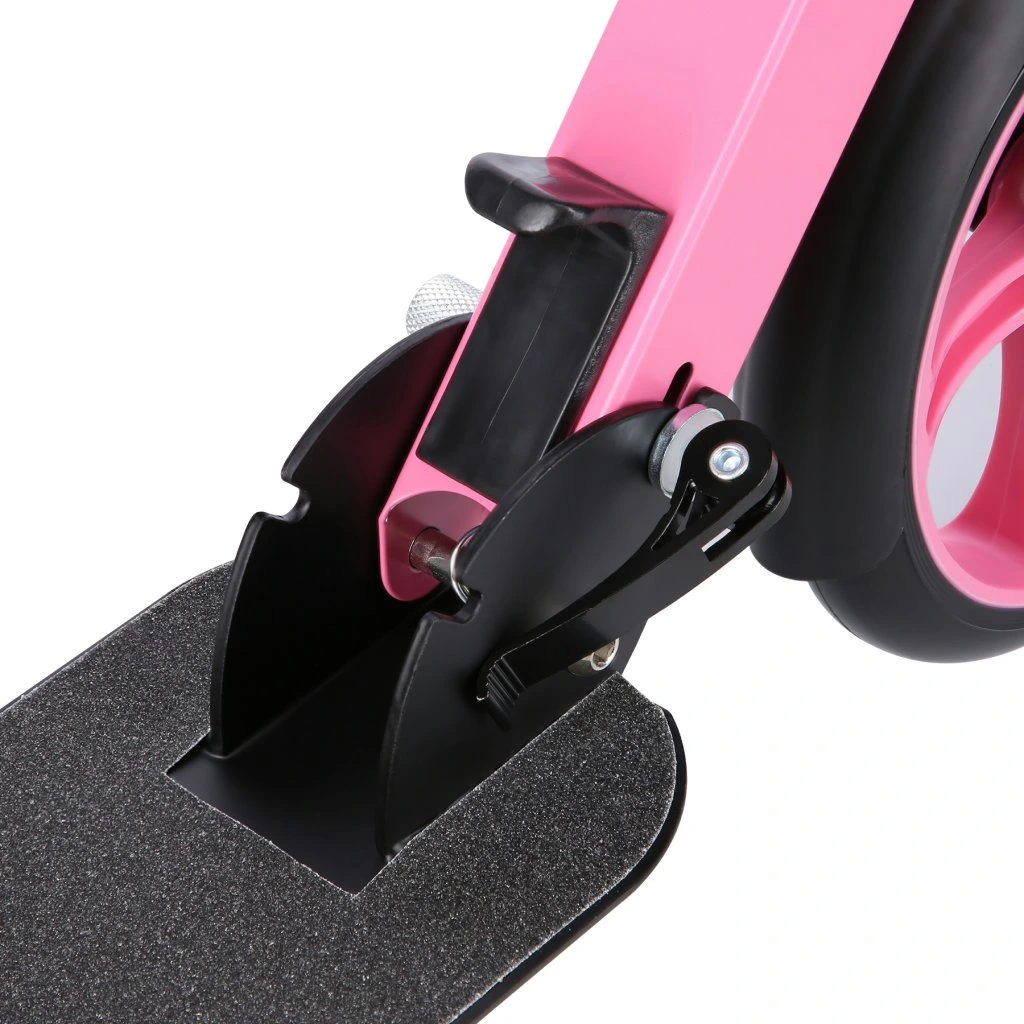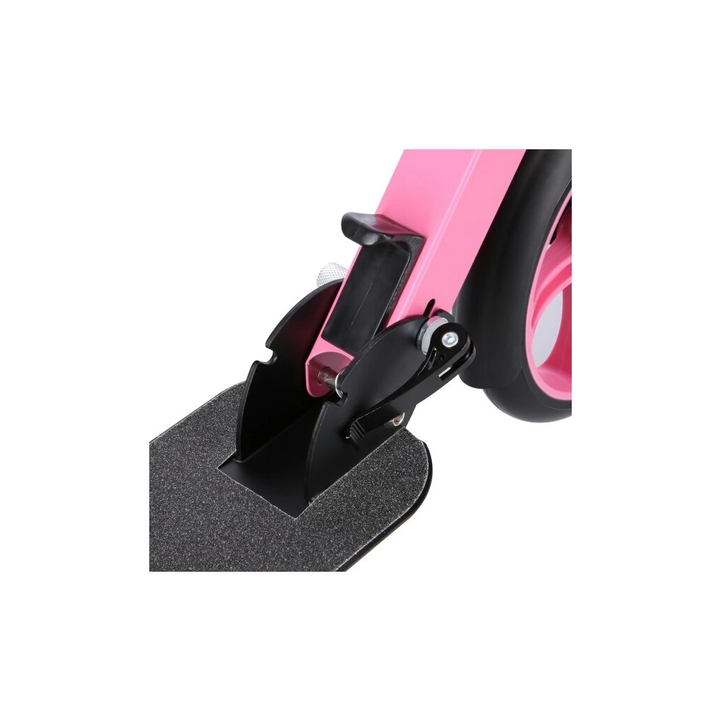Zadní blatník slouží jako přítlačná brzda. Rídítka je možné při skládání sklopit a pro maximální pohodlí během jízdy jsou opatřena gumovými rukojeťmi. Výšku řídítek lze nastavit do 3 úrovní v rozsahu od 75 do 95 cm.