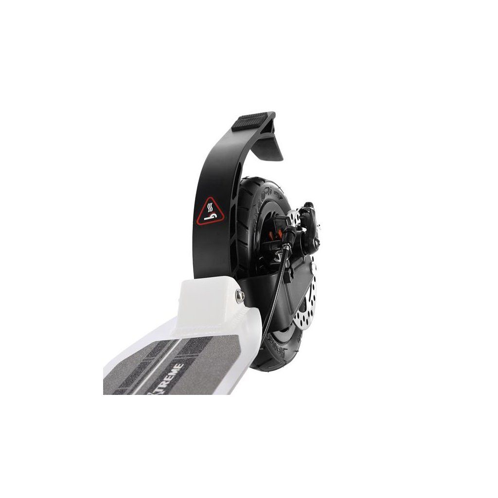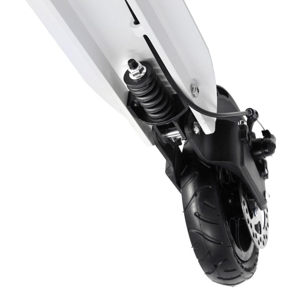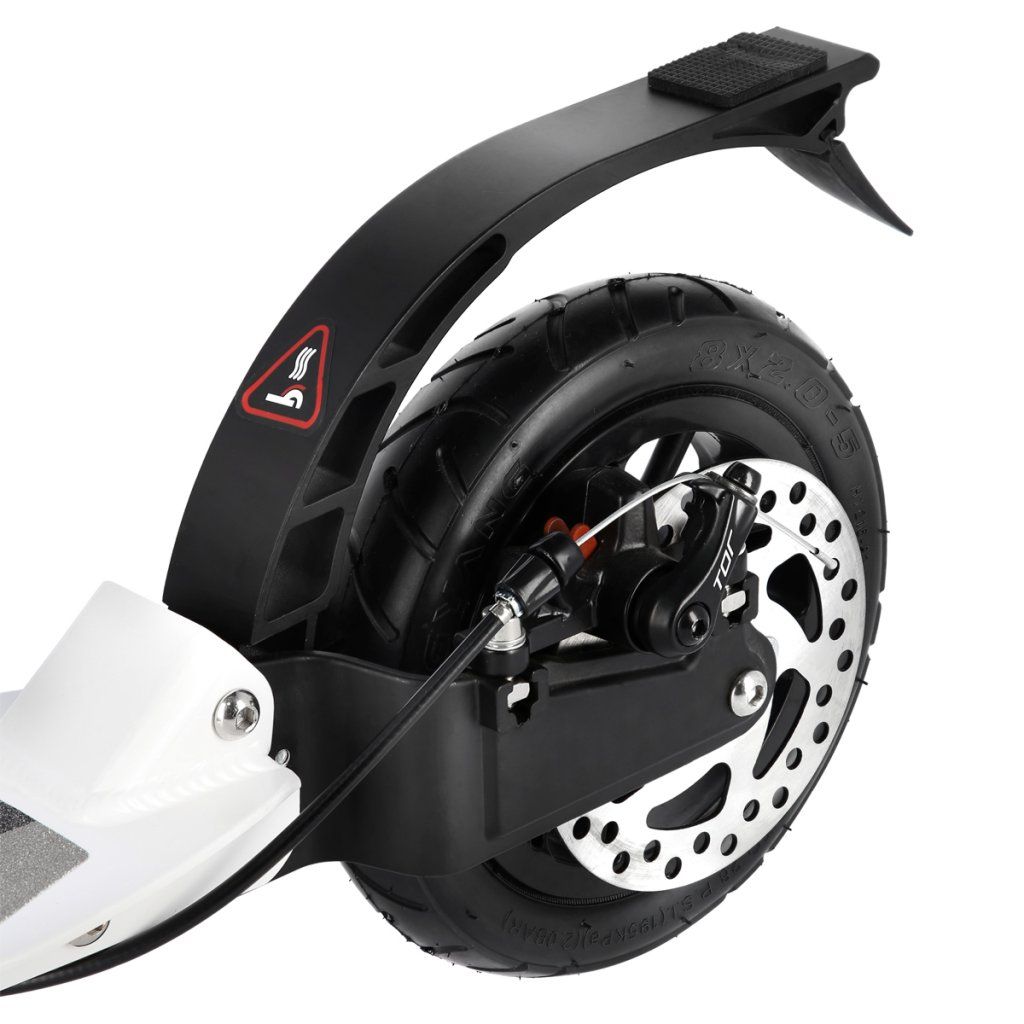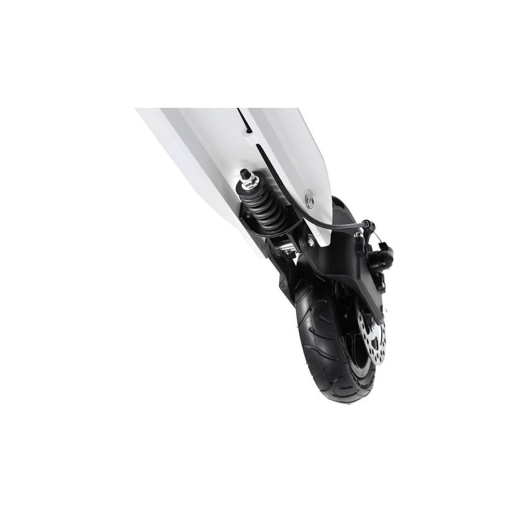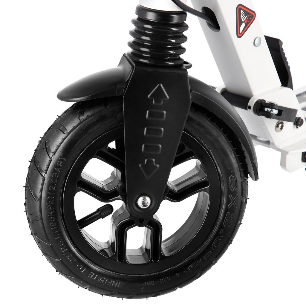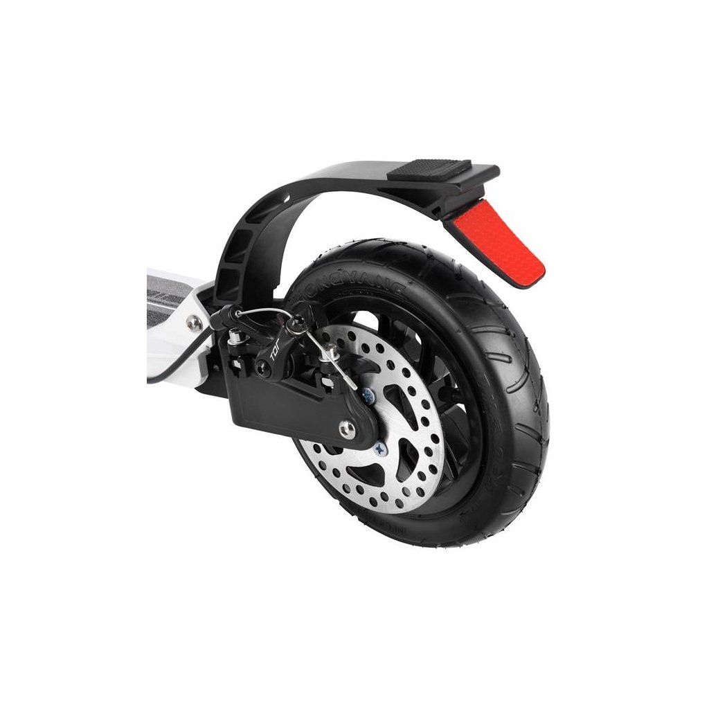Systém odpružení obou kol zvyšuje jízdní komfort. Tlumiče pohlcují nárazy a jízda po nerovném asfaltu, nebo dlažebních kostkách je příjemnější a tižší. Robustní zadní blatník slouží jako přítlačná brzda, která ještě podtrhuje brzdný účinek kotouče. Samotný kotouč je bržděn jedním pístkem, který je mechanicky ovládaný lankem z páčky na řídítkách, ty jsou opatřeny gumovými rukojeťmi, které zajišťují pevný a pohodlný úchop. Velká kola jsou osazena ložisky ABEC 9 a pumpovanou pneumatikou o průměru 200 milimetrů. Tato kombinace zajišťuje rychlou, plynulou a bezpečnou jízdu. Pumpované pneumatiky navíc spolupracují s tlumiči a také pohlcují povrchové nerovnosti. Blatník na předním kole a skládací stojánek jsou již jen pomyslnou "třešničkou na dortu", která přizpívá k maximálnímu možnému komfortu z jízdy a k celkové radosti ze samotného použivání modelu MH208T.