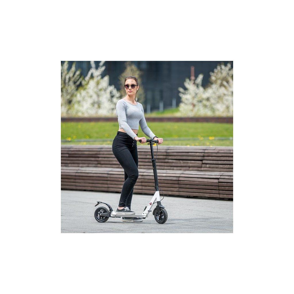 Skládací hliníková konstrukce je lehká, pevná a po složení není problém s koloběžkou cestovat například v autobuse, nebo tramvaji. HM208T se také snadno vejde do kufru osobního automobilu, kde nezabere moc místa a můžete si ji tak vzít s sebou například na dovolenou.