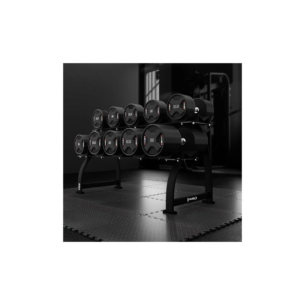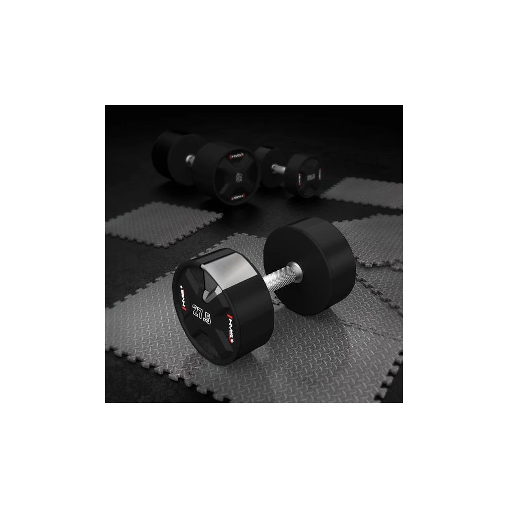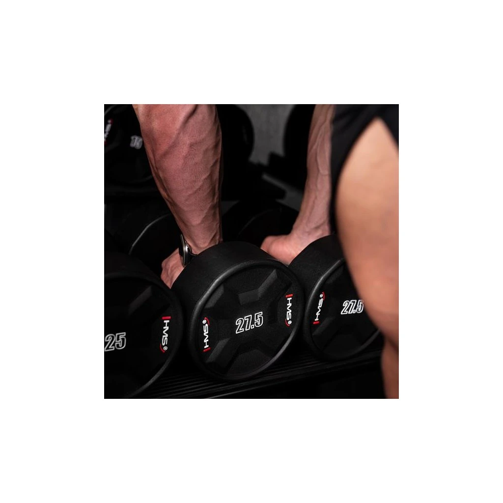 Jednoruční činky HMS HPC jsou vyrobeny z ocelového jádra potaženého litým polyuretanem (CPU). HPC jsou vybavením vytvořeným s ohledem na nejnáročnější uživatele. Výjimečná odolnost, estetické provedení a pokročilé vlastnosti z nich činí ideální volbu pro ty, kteří očekávají spolehlivost během intenzivních tréninků.