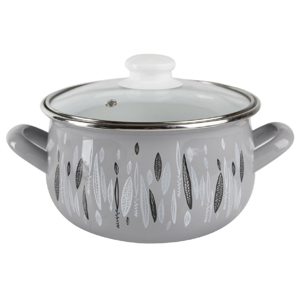Smaltovaný hrnec z řady Autumn o průměru 22 cm a objemu 5,3 l v šedé barvě s dekorem listů.