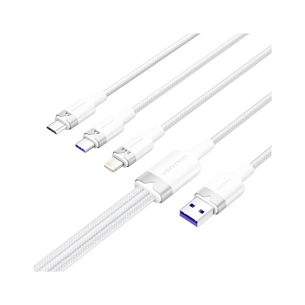 Kabel USB 2.0 A na 3 v 1 6A Vention CTRWG 1,5M (bílý)